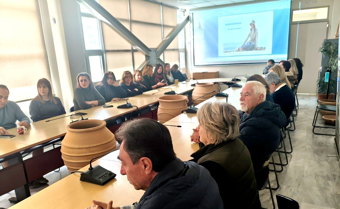 Με αφορμή την Παγκόσμια Ημέρα της Γυναίκας, η Δημοτική Επιτροπή Ισότητας (ΔΕΠΙΣ) του Δήμου Μινώα Πεδιάδας, σε συνεργασία με το Τμήμα Κοινωνικής Προστασίας, Προαγωγής Δημόσιας Υγείας και Ισότητας των Φύλων και το Κέντρο Υγείας Αρκαλοχωρίου, διοργάνωσαν την Παρασκευή 6 Μαρτίου 2026 ενημερωτική εκδήλωση με θέμα: «Από την έμμηνο ρύση στην εμμηνόπαυση», στην αίθουσα συνεδριάσεων του Δημοτικού Καταστήματος Αρκαλοχωρίου.