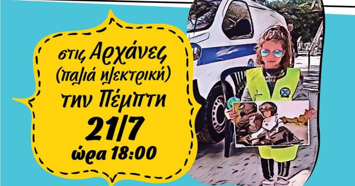 Στις Αρχάνες θα βρίσκεται την Πέμπτη 21 Ιουλίου, στις 18.00 το απόγευμα η Τροχαία Ηρακλείου στο πλαίσιο της καμπάνιας ενημέρωσης που διοργανώνει με την Περιφέρεια Κρήτης με θέμα την Οδική Ασφάλεια. Μάλιστα, εκεί θα σημάνει και η επίσημη έναρξη της καμπάνιας.