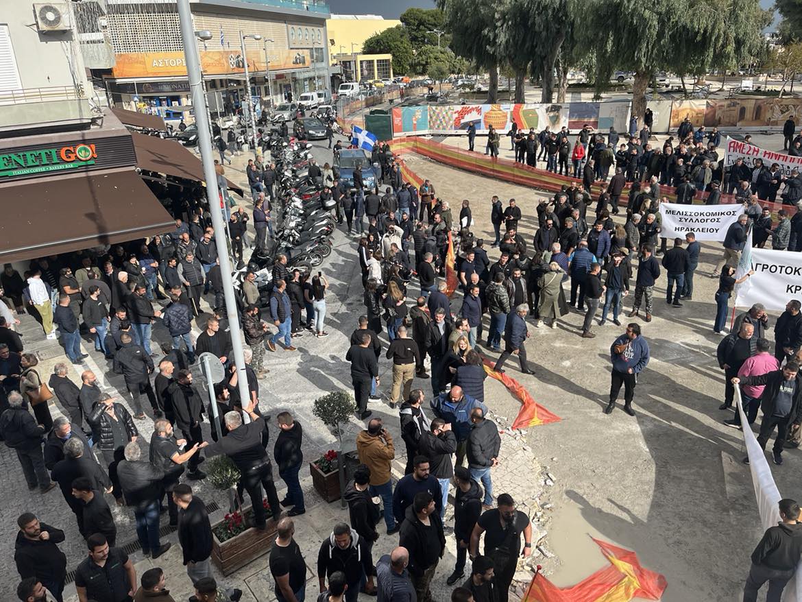 Μετά την πορεία μέσω της παραλιακής, 25ης Αυγούστου και Λ.Δικαιοσύνης και τη σύσκεψη στην Περιφέρεια κι αφού αποφασίστηκε ο συμβολικός αποκλεισμός του κόμβου της Ν.Αλικαρνασσού, όλοι επέστρεψαν στην Αποκεντρωμένη Διοίκηση Κρήτης, από αναχώρησαν με προορισμό τον επόμενο "σταθμό" των κινητοποιήσεών τους.