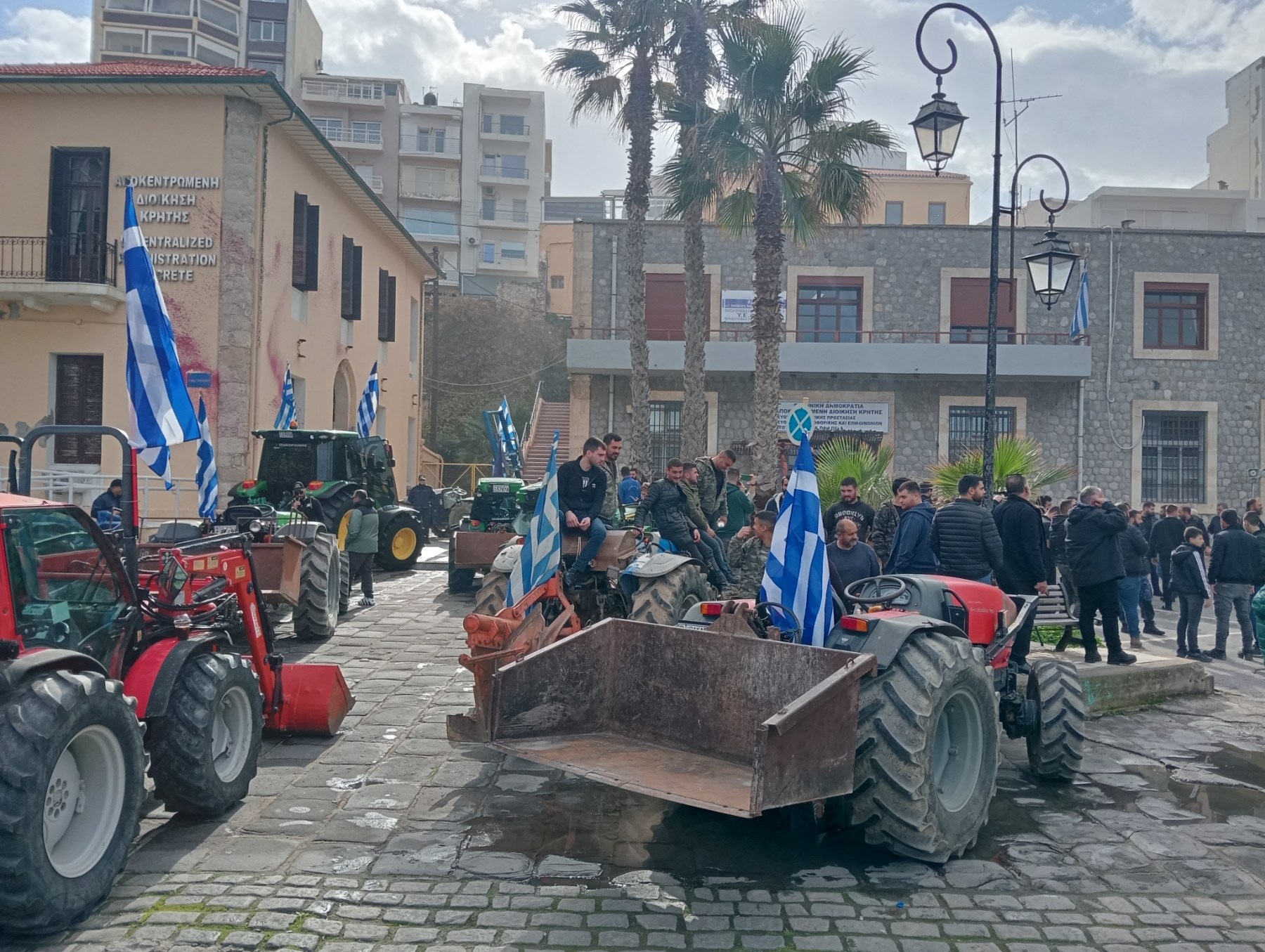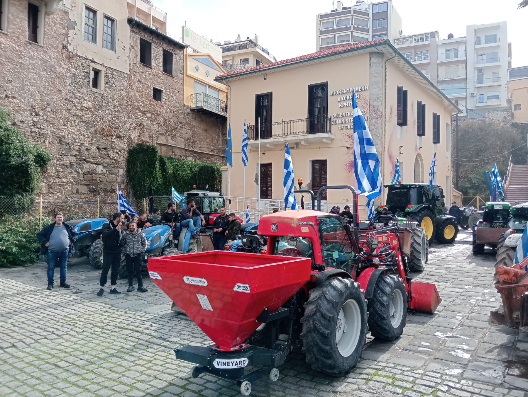 Μετά την άφιξη έξω από την Αποκεντρωμένη Διοίκηση Κρήτης, η Συντονιστική Επιτροπή των αγροτοκτηνοτρόφων εισήλθε στα γραφεία για να επιδώσει ψήφισμα διαμαρτυρίας στο πλαίσιο συνάντησης με την συντονίστρια Μαρία Κοζυράκη, ενώ κατόπιν με πορεία, οι συγκεντρωμένοι μετέβησαν στην Περιφέρεια Κρήτης όπου επίσης επέδωσαν ψήφισμα. Παρών στη συνάντηση στην Αποκεντρωμένη Διοίκηση και ο πρόεδρος της Ένωσης Ηρακλείου, Σταύρος Γαβαλάς.