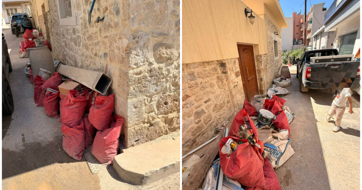 Σαν να μην έφτανε αυτό, ανάμεσα στα μπάζα βρίσκεται και μία σωλήνα αμιάντου, υλικό ιδιαίτερα επικίνδυνο για τη δημόσια υγεία.