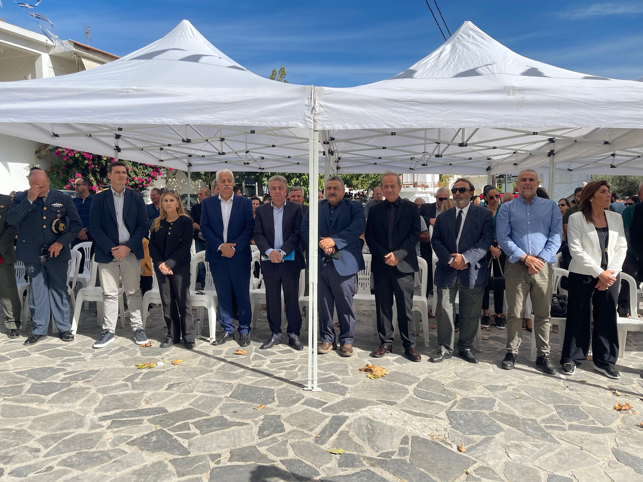 Παραβρέθηκαν και κατέθεσαν στεφάνια οι βουλευτές Χανίων Σέβη Βολουδάκη, Αλέξανδρος Μαρκογιαννάκης, η εκπρόσωπος της Ντόρας Μπακογιάννη, ο Περιφερειάρχης Κρήτης, ο αντιπεριφερειάρχης Χανίων, ο Δήμαρχος Αποκορώνου, ο δήμαρχος Σφακίων Σήφης Χιωτάκης και ο νεοεκλεγείς Δήμαρχος Γιάννης Ζερβός, ο Αντιδήμαρχος Αρταίων Γεώργιος Μπουκουβάλας, εκπρόσωποι τοπικών και στρατιωτικών αρχών καθώς και αντιπροσωπείες Εθνικοτοπικών Σωματείων από τη Μάνη και την Άρτα, ενώ παραβρέθηκαν ο Δήμαρχος Χανίων Παναγιώτης Σημανδηράκης, περιφερειακοί και δημοτικοί σύμβουλοι.