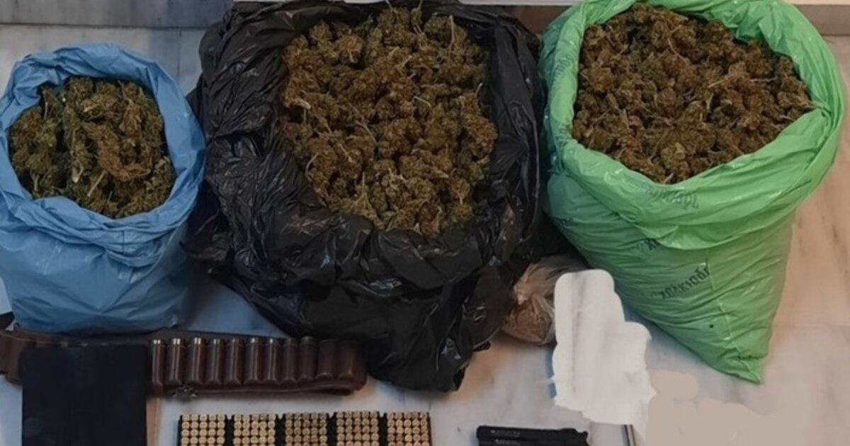 Ακολούθησε έρευνα στο σπίτι του όπου βρέθηκε ποσότητα κάνναβης μεγαλύτερη του ενός κιλού. Συνολικά κατασχέθηκαν 5,2 κιλά χασίς, ζυγαριά ακριβείας , αυτοσχέδιο όπλο (τύπου στυλό), πιστόλι κρότου με γεμιστήρα και 292 φυσίγγια διαφόρων τύπων και διαμετρημάτων