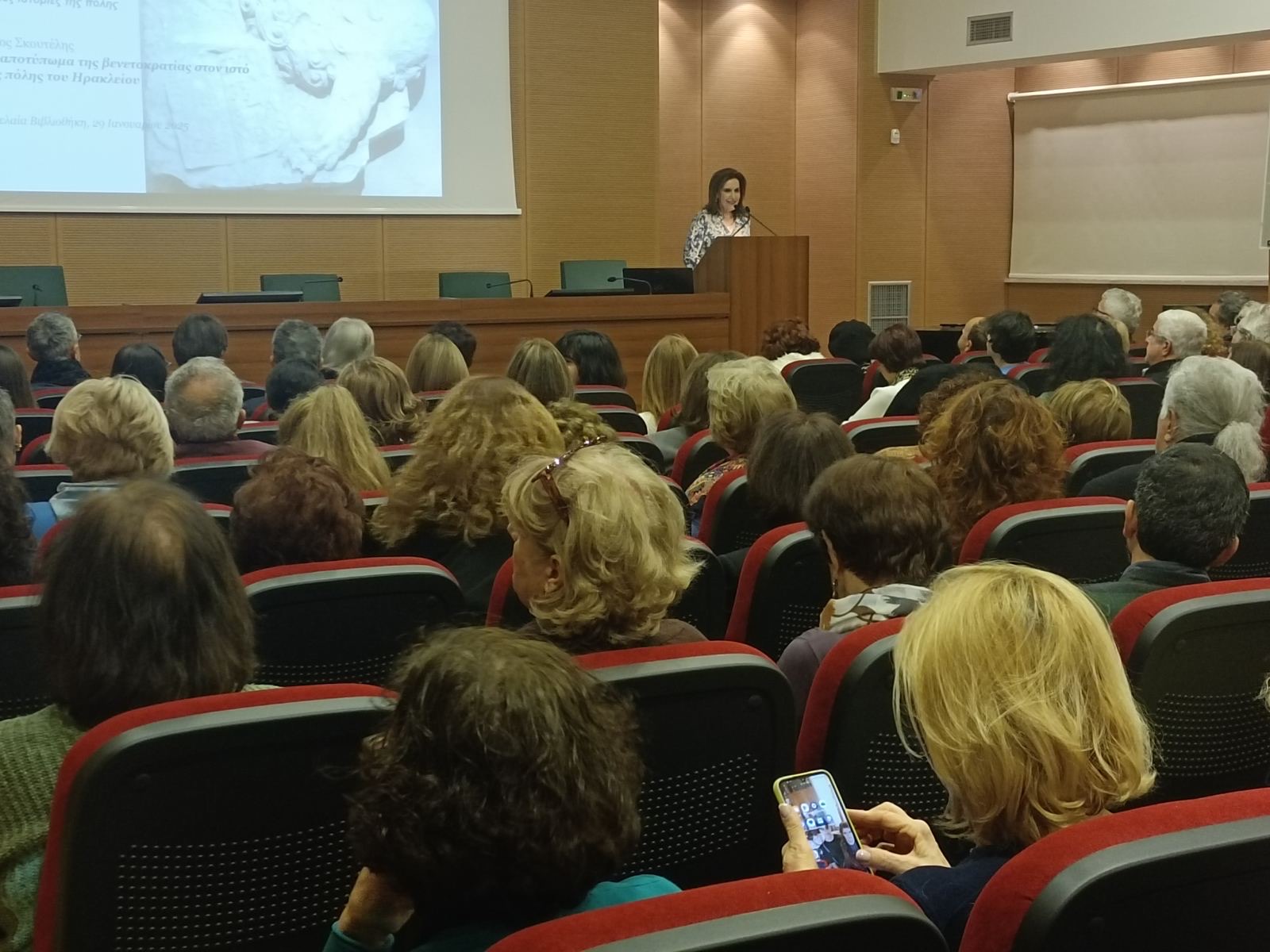 Πλήθος κόσμου παρακολούθησε την ενδιαφέρουσα ομιλία με τίτλο «Το αποτύπωμα της βενετοκρατίας στον ιστό της πόλης» από τον Αρχιτέκτονα Μηχανικό-Ι.U.A.V. Βενετίας–PhD E.M.Π. και Καθηγητή Σχολής Αρχιτεκτόνων Μηχανικών Πολυτεχνείου Κρήτης Νίκο Σκουτέλη, στο πλαίσιο του επιτυχημένου κύκλου «Μικρές ιστορίες της πόλης» που διοργανώνεται από την Αντιδημαρχία Πολιτισμού του Δήμου Ηρακλείου και τη Βικελαία Δημοτική Βιβλιοθήκη.