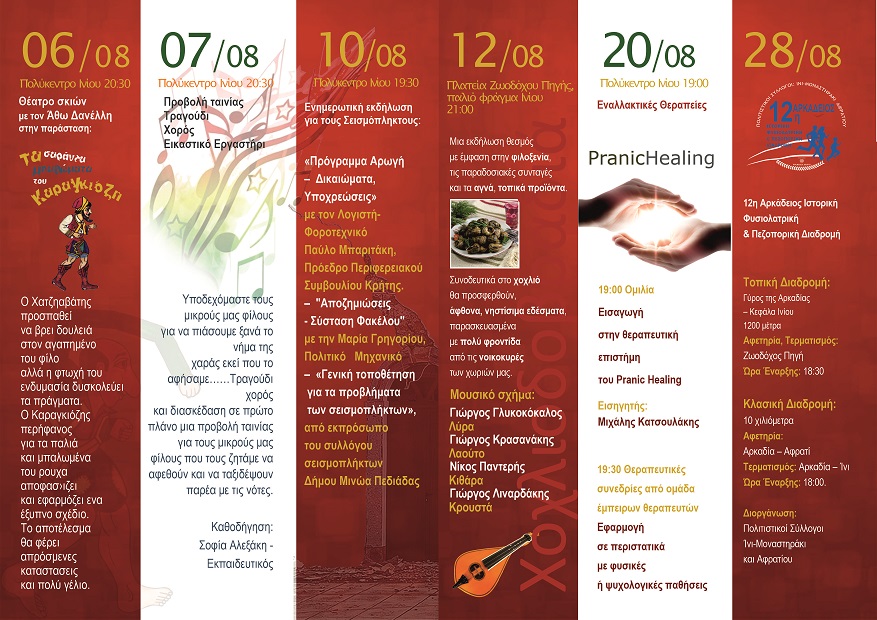 Εκδηλώσεις Πολιτισμού, Αθλητισμού και ενημέρωσης από τον Πολιτιστικό Σύλλογο Ίνι-Μοναστηράκι «ΙΝΑΤΟΣ» και την Περιφέρεια Κρήτης
