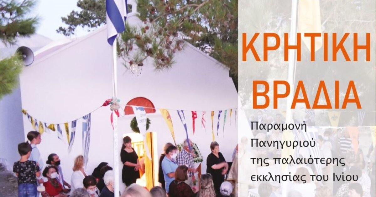 Με αφορμή το πανηγύρι του χωριού, «το Γενέσιο της Θεοτόκου», θα πραγματοποιηθεί η προγραμματισμένη «ΚΡΗΤΙΚΗ ΒΡΑΔΙΑ», στο μαγευτικό τοπίο της Κεράς, στις παρυφές του αρχαιολογικού χώρου της Ρωμαϊκής Αρκαδίας και του ανακαινισμένου Νερόμυλου, στο παλιό φράγμα Ινίου, το Σάββατο 07 Σεπτεμβρίου 2024, με ώρα έναρξης 20:30.