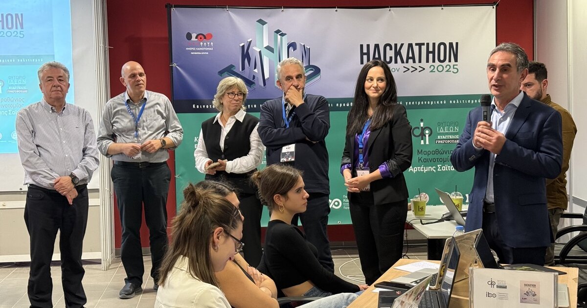Με μεγάλη επιτυχία, δυναμισμό και διπλάσιες συμμετοχές σε σχέση με την προηγούμενη διοργάνωση, πραγματοποιήθηκε ο Μαραθώνιος Καινοτομίας Hackathon 2025 «Αρτέμης Σαϊτάκης», στο Διεθνές Εκθεσιακό Κέντρο Κρήτης, στο πλαίσιο των InnoDays 2025.