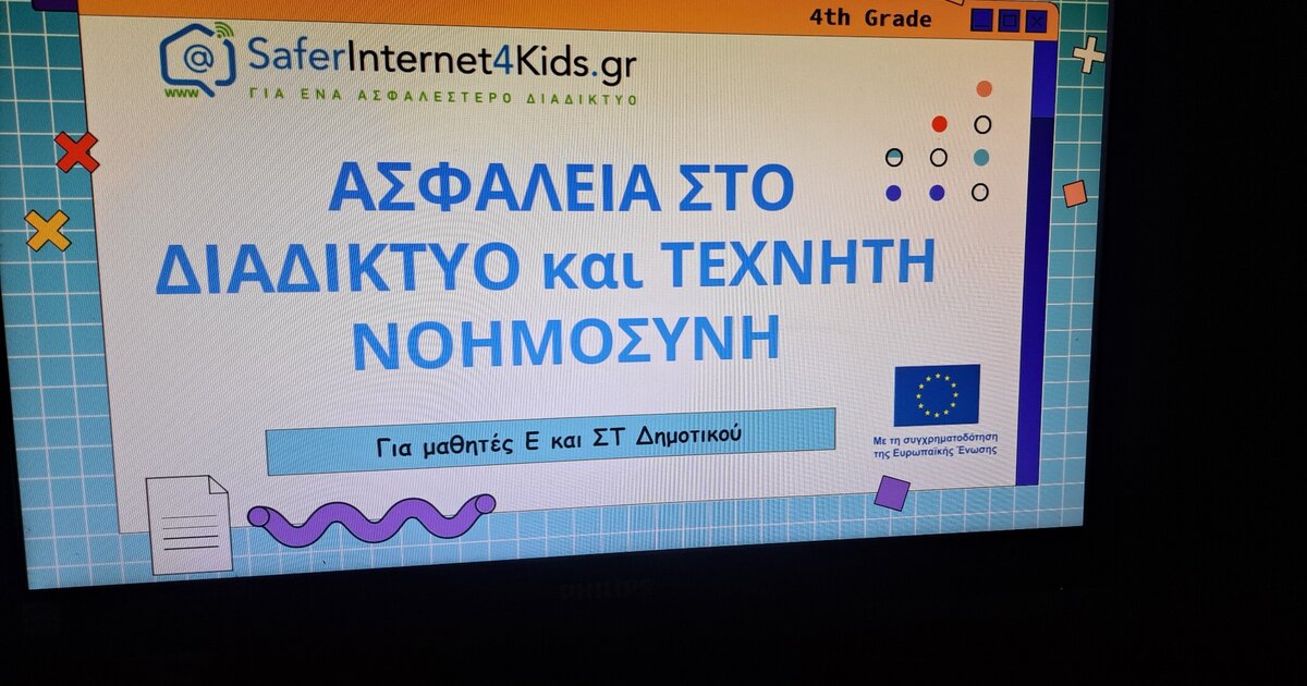 Τo Ελληνικό Κέντρο Ασφαλούς Διαδικτύου "Saferinternet4kids" πραγματοποίησε άλλη μία ενημέρωση στους μαθητές της ΣΤ τάξης του 17ου Δημοτικού Σχολείου Ηρακλείου για την Ασφάλεια στο διαδίκτυο και την Τεχνητή Νοημοσύνη.