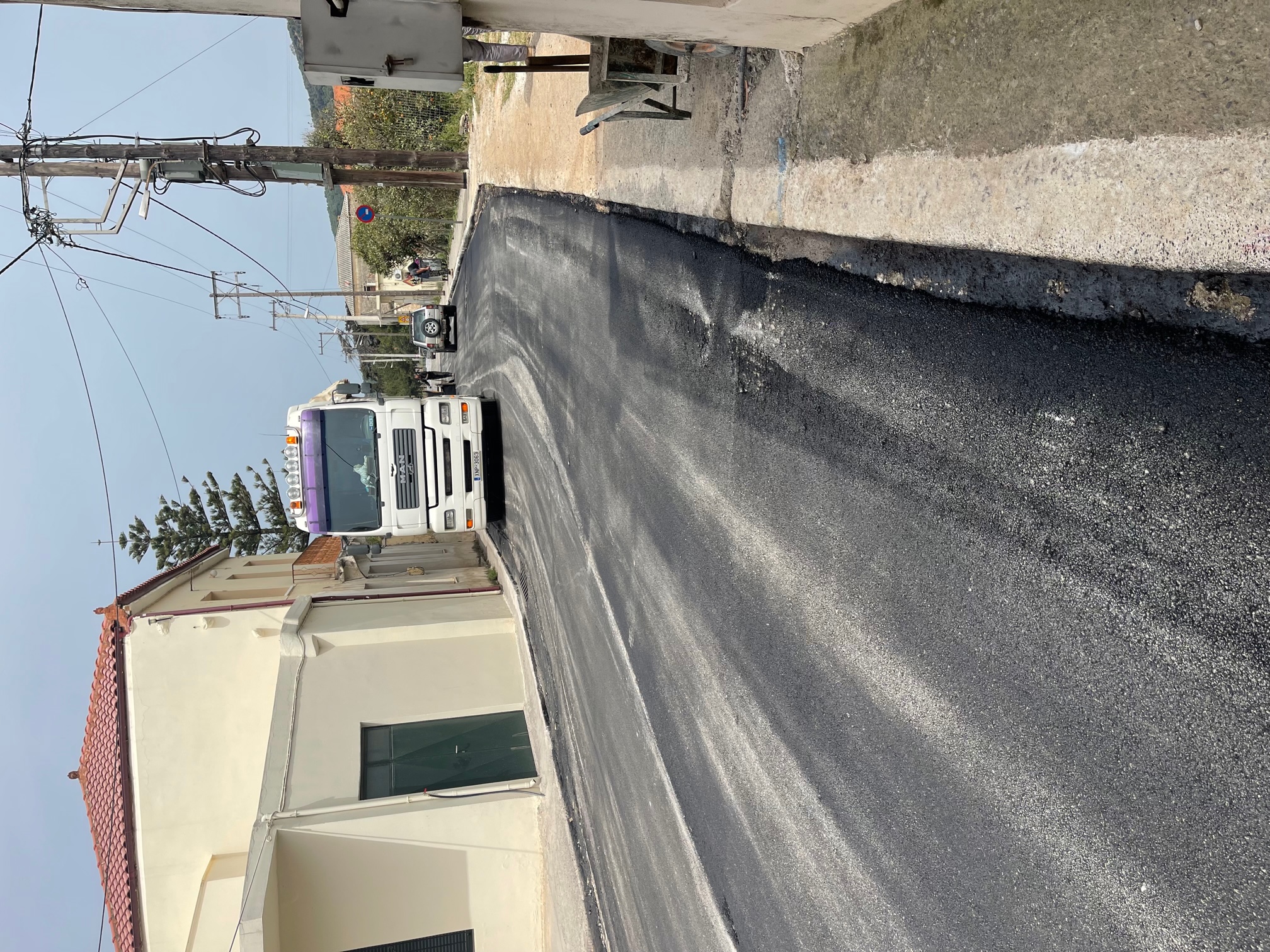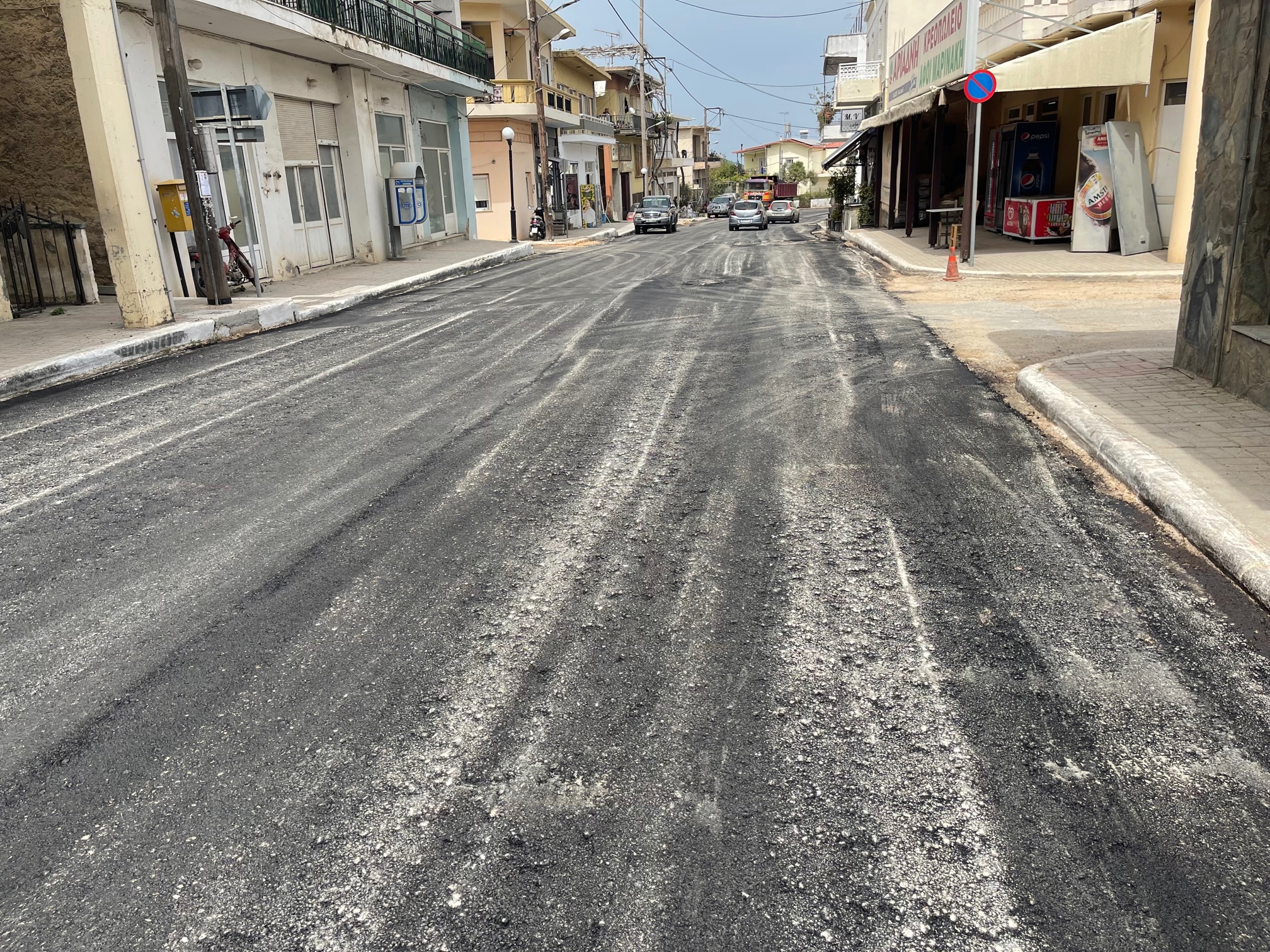 Οι εργασίες περιλάμβαναν απόξεση και αφαίρεση του παλιού ασφαλτικού, τοποθέτηση νέας υπόβασης και νέου ασφαλτοτάπητα
