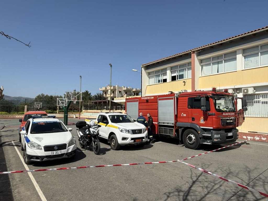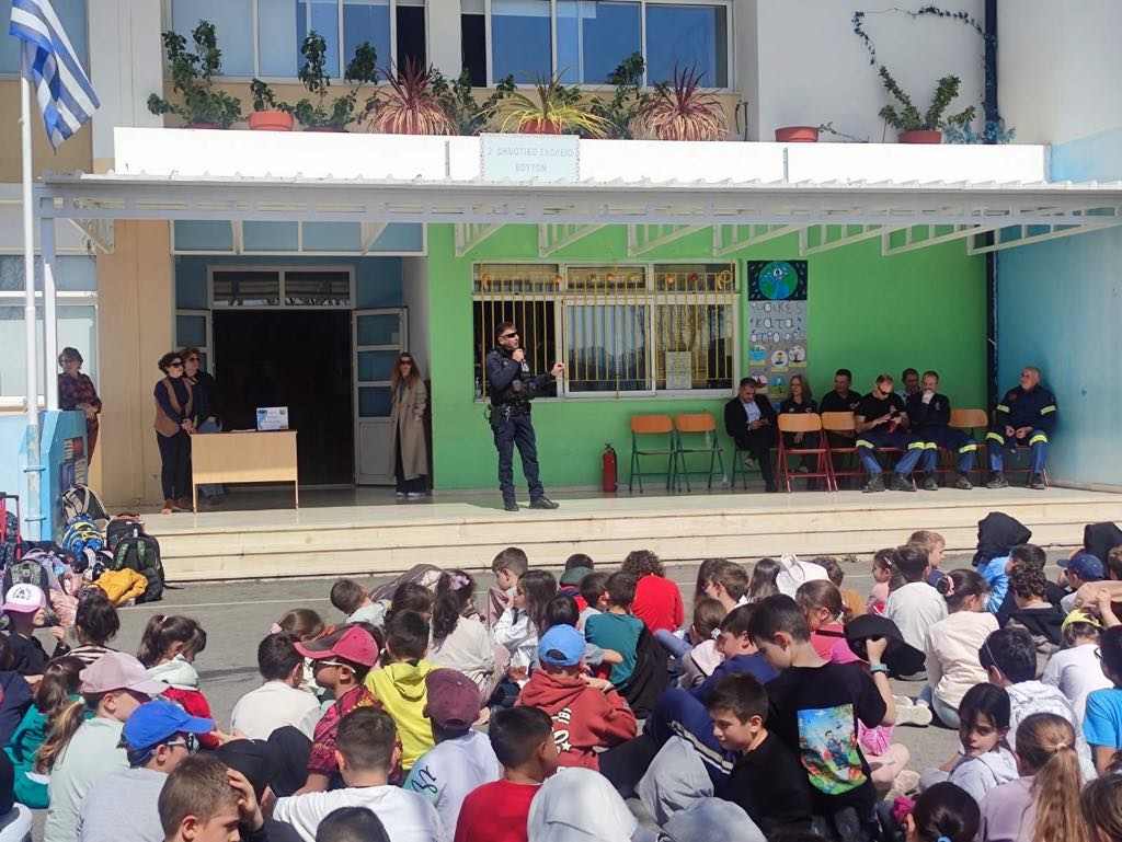 Τρία σενάρια στην άσκηση ετοιμότητας στο σχολείο στις Βούτες με τη συμμετοχή της ΕΛ.ΑΣ. και της Πυροσβεστικής - Ενημέρωση από την Τροχαία Ηρακλείου για την οδηγική συμπεριφορά μετά από κάποια φυσική καταστροφή