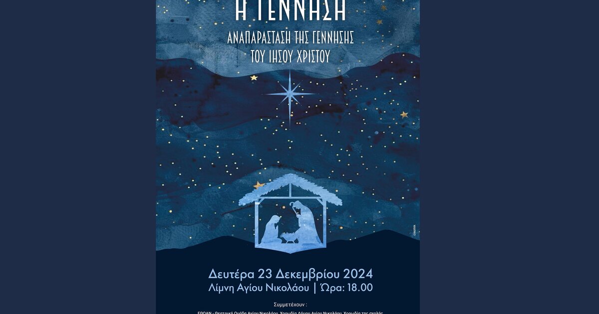 Τη Δευτέρα 23 Δεκεμβρίου 2024 και ώρα 18:00 η αναπαράσταση της γέννησης του Ιησού