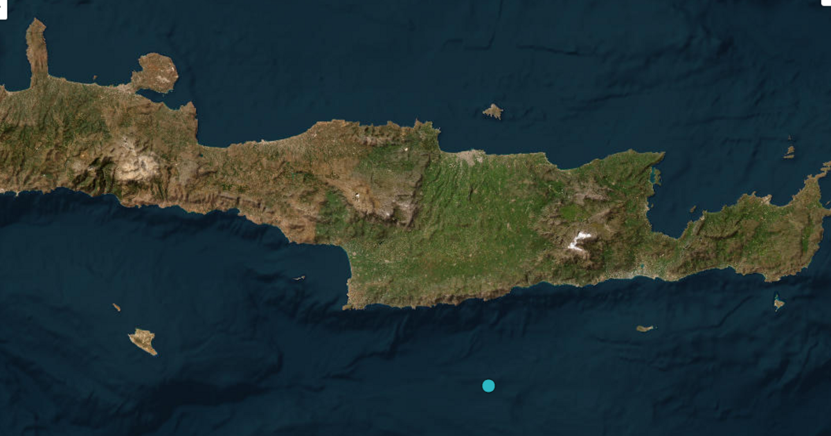 Ασθενής σεισμική δόνηση σημειώθηκε λίγο μετά τα μεσάνυχτα στο θαλάσσιο χώρο νότια της Κρήτης.