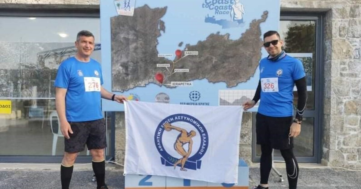 Στον ημιμαραθώνιο Coast to Coast που διεξήχθη χθες 27 Μαρτίου 2022 στην Ιεράπετρα, συμμετείχαν εκπροσωπώντας την Αθλητική Ένωση Αστυνομικών Ελλάδος/ Παράρτημα Κρήτης οι αστυνομικοί αθλητές και μέλη της Ένωσης Λυκοκώστας Παύλος και Πιτσιτάκης Γεώργιος από τα Χανιά.