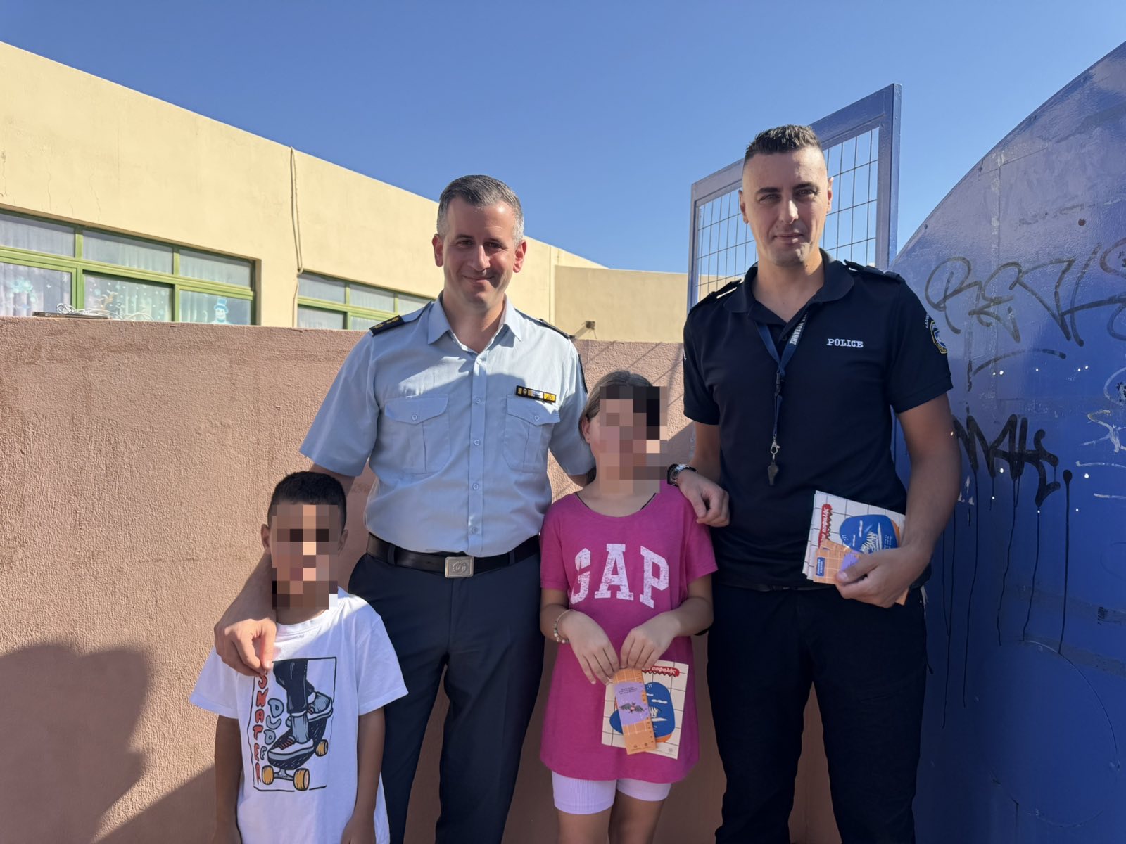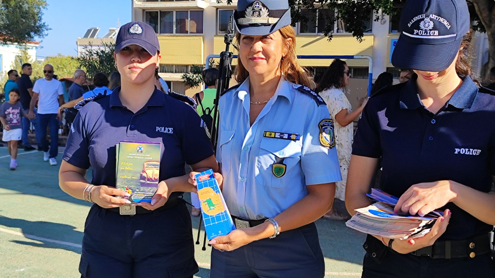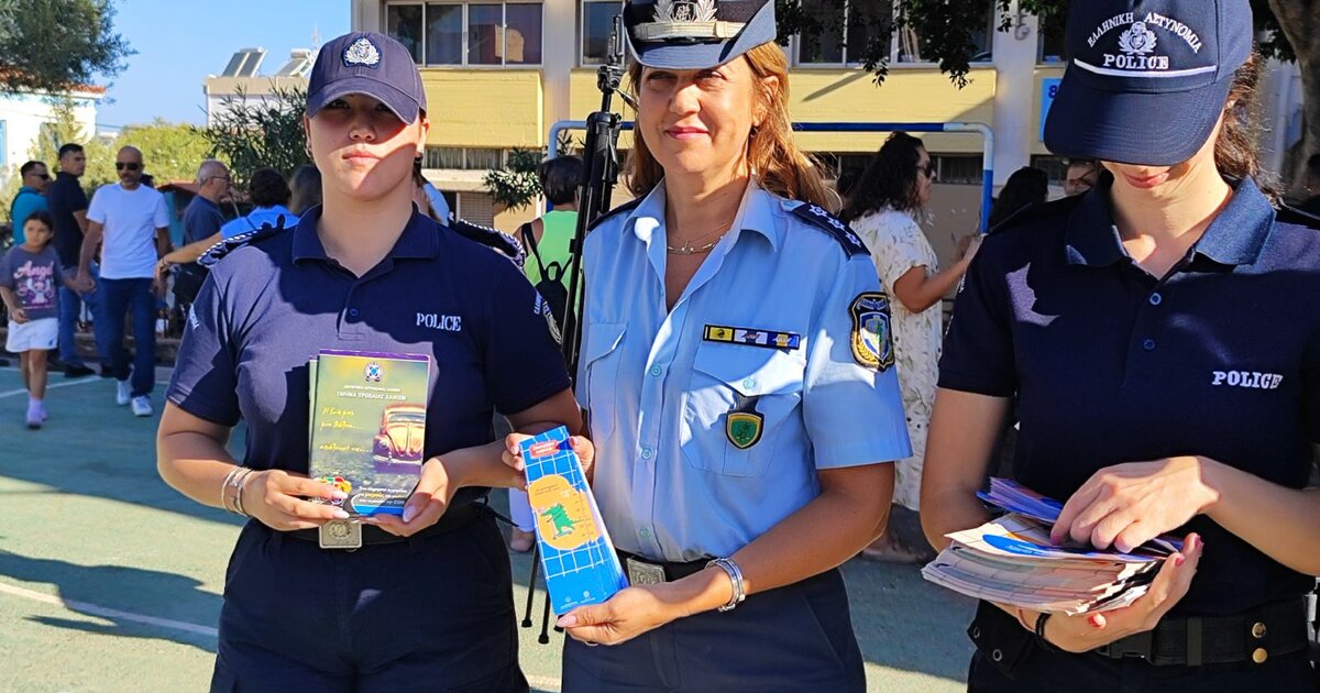 Με την ευκαιρία της τέλεσης του καθιερωμένου αγιασμού στα σχολεία για την έναρξη της σχολικής χρονιάς, αστυνομικοί των Διευθύνσεων Αστυνομίας Χανίων, Ρεθύμνου, Ηρακλείου και Λασιθίου βρέθηκαν σήμερα (11.05.2025) έξω από σχολικά συγκροτήματα και μοίρασαν ενημερωτικά φυλλάδια κυκλοφοριακής αγωγής σε γονείς και μαθητές, απευθύνοντας παράλληλα ευχές για καλή και δημιουργική σχολική χρονιά.