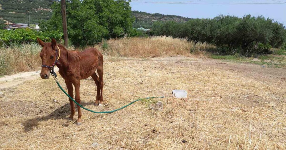 Η εικόνα του σπαρακτική. Μέσα σε συνθήκες καύσωνα δεμένο, με εμφανείς πληγές στο σώμα, σκελετωμένο, αφυδατωμένο… Το μικρής ηλικίας αλογάκι υπέφερε σιωπηλά κάτω από τον καυτό ήλιο, στην ευρύτερη περιοχή των Αρχανών.