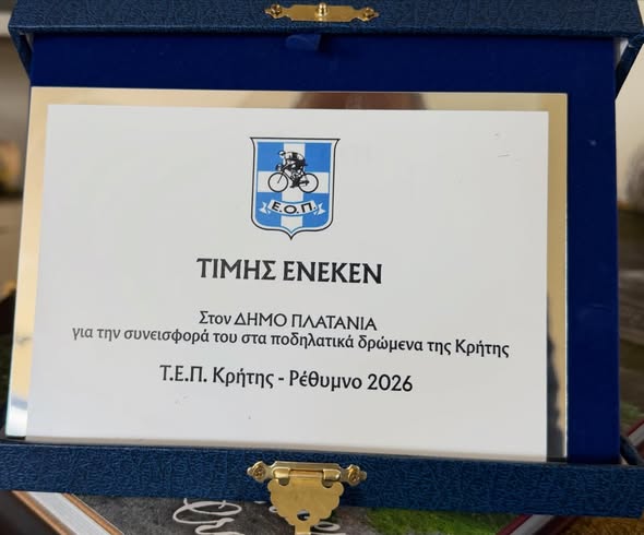 Τιμητικές διακρίσεις από αθλητικά σωματεία και φορείς της Κρήτης έλαβε τις προηγούμενες ημέρες ο Δήμος Πλατανιά, σε αναγνώριση της διαχρονικής στήριξης και της συμβολής του στην ανάπτυξη του αθλητισμού.