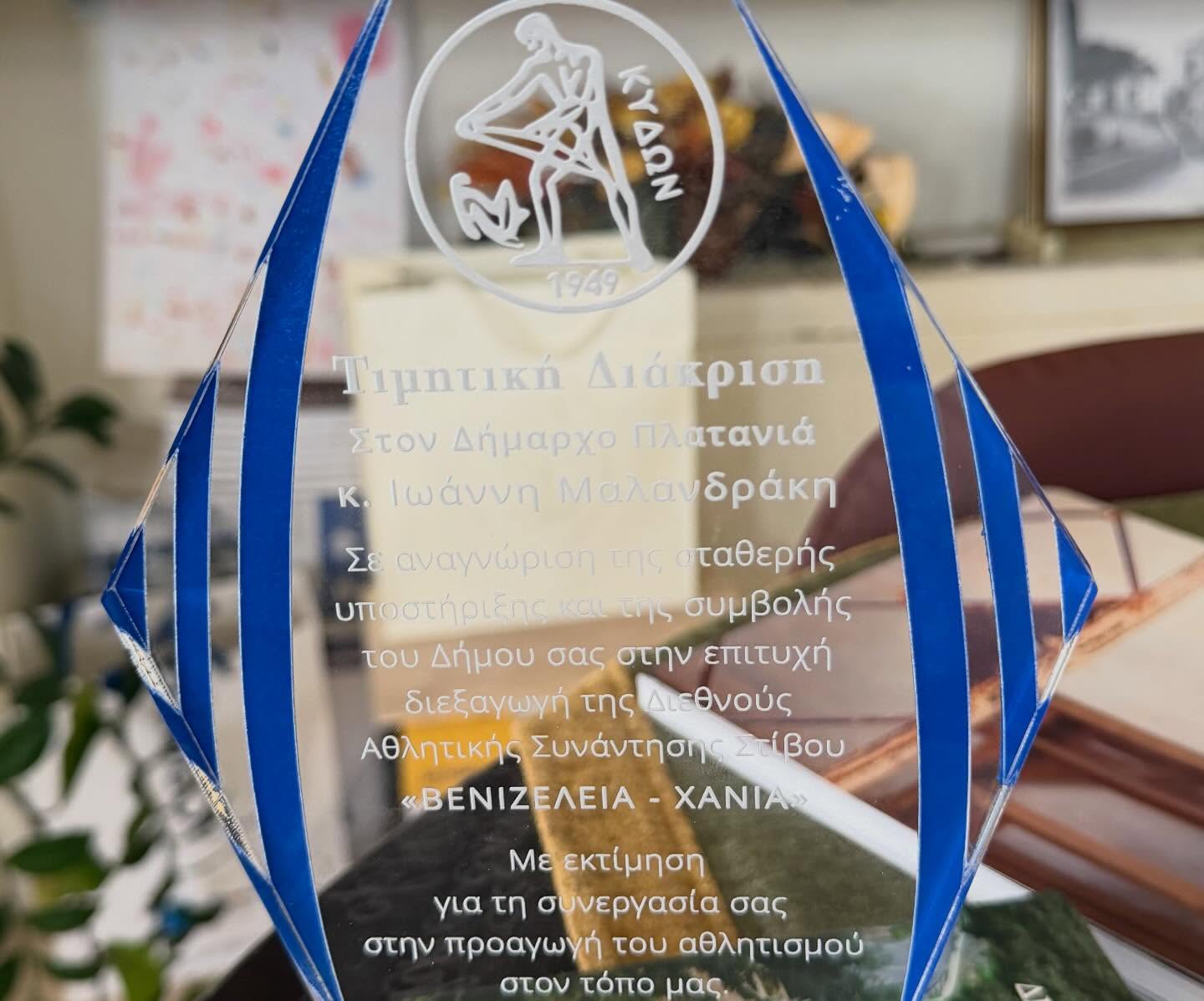 Τις τιμητικές διακρίσεις παρέλαβαν, ο Δήμαρχος Πλατανιά κος Γιάννης Μαλανδράκης και ο Αντιδήμαρχος Αθλητισμού κος Στυλιανός Δημητρογιαννάκης.