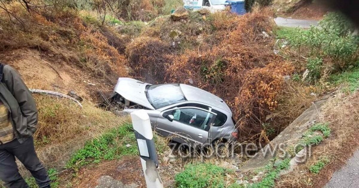 Σε χαντάκι κατέληξε ένα αυτοκίνητο το πρωί της Τρίτης στα Χανιά.