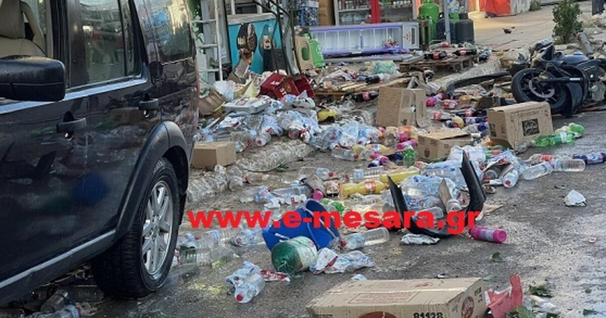 Αυτοκίνητο που κατέγραφε τρελή πορεία, σύμφωνα με το e-mesara.gr, στην είσοδο του Τυμπακίου και με κατεύθυνση προς τις Μοίρες παρέσυρε ό,τι βρήκε μπροστά του μέχρι να ακινητοποιηθεί.