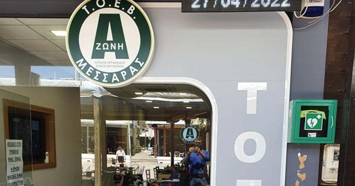 O TOEB Μεσαράς προμηθεύτηκε και τοποθέτησε στην είσοδο του γραφείου στην κεντρική πλατεία Τυμπακίου, έναν σύγχρονο αυτόματο εξωτερικό απινιδωτή.