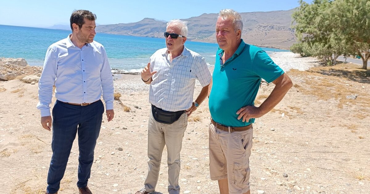 Αυτοψία στην ακτογραμμή στη περιοχή του Γούδουρα, του Δήμου Σητείας πραγματοποίησε ο Αντιπεριφερειάρχης Λασιθίου Γιάννης Ανδρουλάκης με τον επικεφαλής επιστήμονα του Εργαστηρίου Παράκτιας και Θαλάσσιας Έρευνας του ΙΤΕ Νίκο Καμπάνη παρουσία του Περιφερειακού Συμβούλου Γιώργου Τσιφετάκη και τον υποψήφιο διδάκτορα του εργαστηρίου Νίκο Παχάκη.