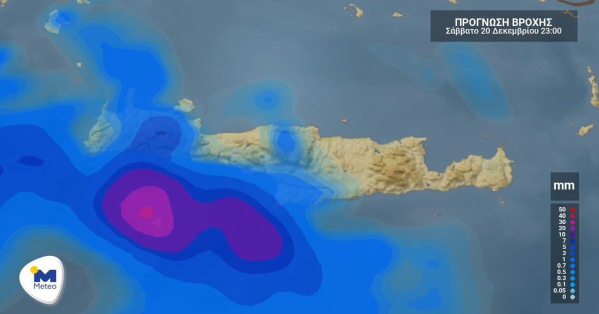 Αυξημένες νεφώσεις με τοπικές βροχές και από το απόγευμα σποραδικές καταιγίδες, αναμένονται το Σάββατο 20 Δεκεμβρίου στην Κρήτη.