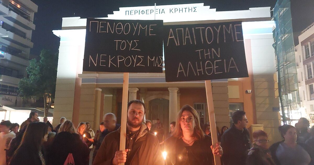 Με ένα κερί στο χέρι και με αμέτρητα "γιατί" στη σκέψη, πλήθος κόσμου βρέθηκεστο κέντρο του Ηρακλείου στο πλαίσιο της σιωπηρής διαμαρτυρίας για τα θύματα της τραγωδίας στα Τέμπη
