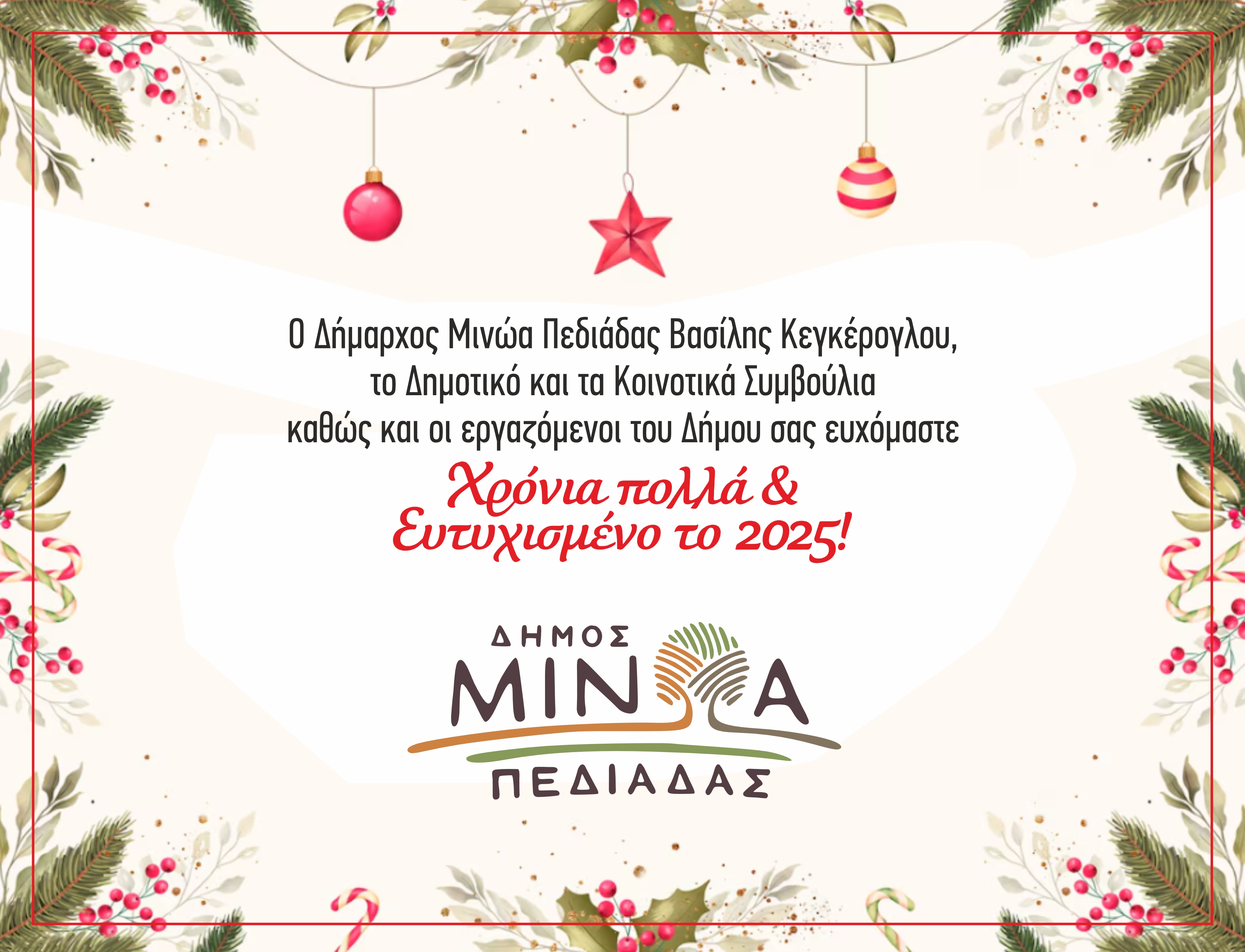 Το μήνυμα του Δημάρχου Μινώα Πεδιάδας Βασίλη Κεγκέρογλου για τα Χριστούγεννα