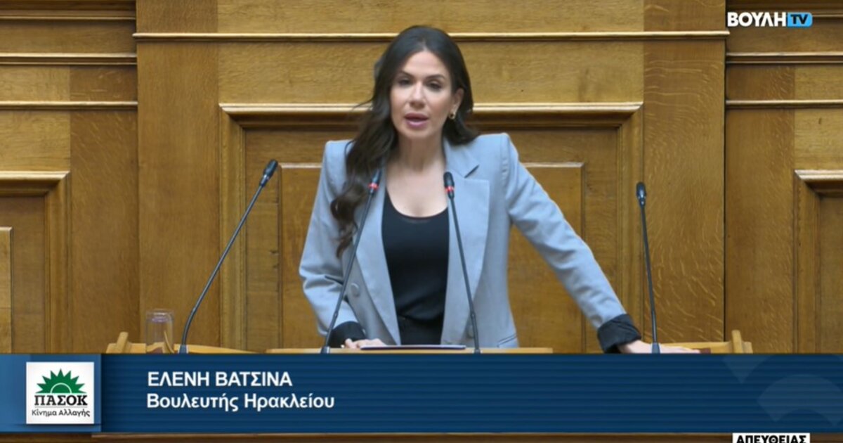 Κριτική στην Οικονομική Πολιτική της κυβέρνησης της ΝΔ άσκησε από το βήμα της Βουλής, η βουλευτής Ηρακλείου ΠΑΣΟΚ, Ελένη Βατσινά