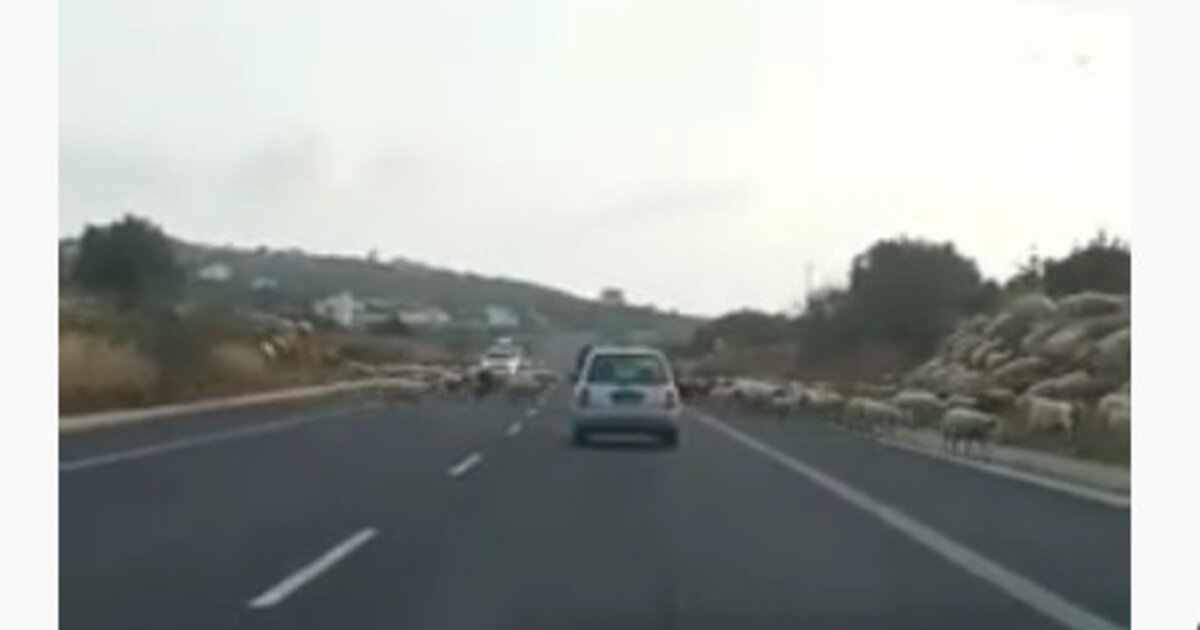 Πρόβατα, βγήκαν στον αυτοκινητόδρομο, 200 μέτρα πριν τον κόμβο για Μάλια - Σίσι.