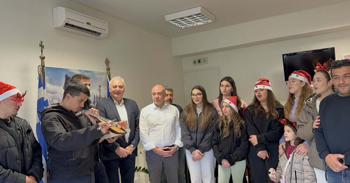 Οι χριστουγεννιάτικες μελωδίες, συνοδεία της παραδοσιακής κρητικής λύρας γέμισαν με γιορτινή ατμόσφαιρα τα γραφεία του Δημαρχείου Βιάννου.