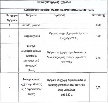 -εκπτώσεις για κατοίκους, συχνούς διερχόμενους ή επαγγελματίες οδηγούς,