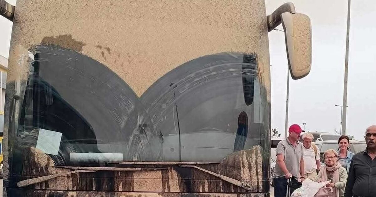Η χαρακτηριστικότερη είναι η φωτογραφία του πούλμαν που έχει καλυφθεί από το κοκκινόχωμα ενώ διέσχιζε τον ΒΟΑΚ τη στιγμή που βρισκόταν σε εξέλιξη η λασποβροχή που έπεσε το απόγευμα: