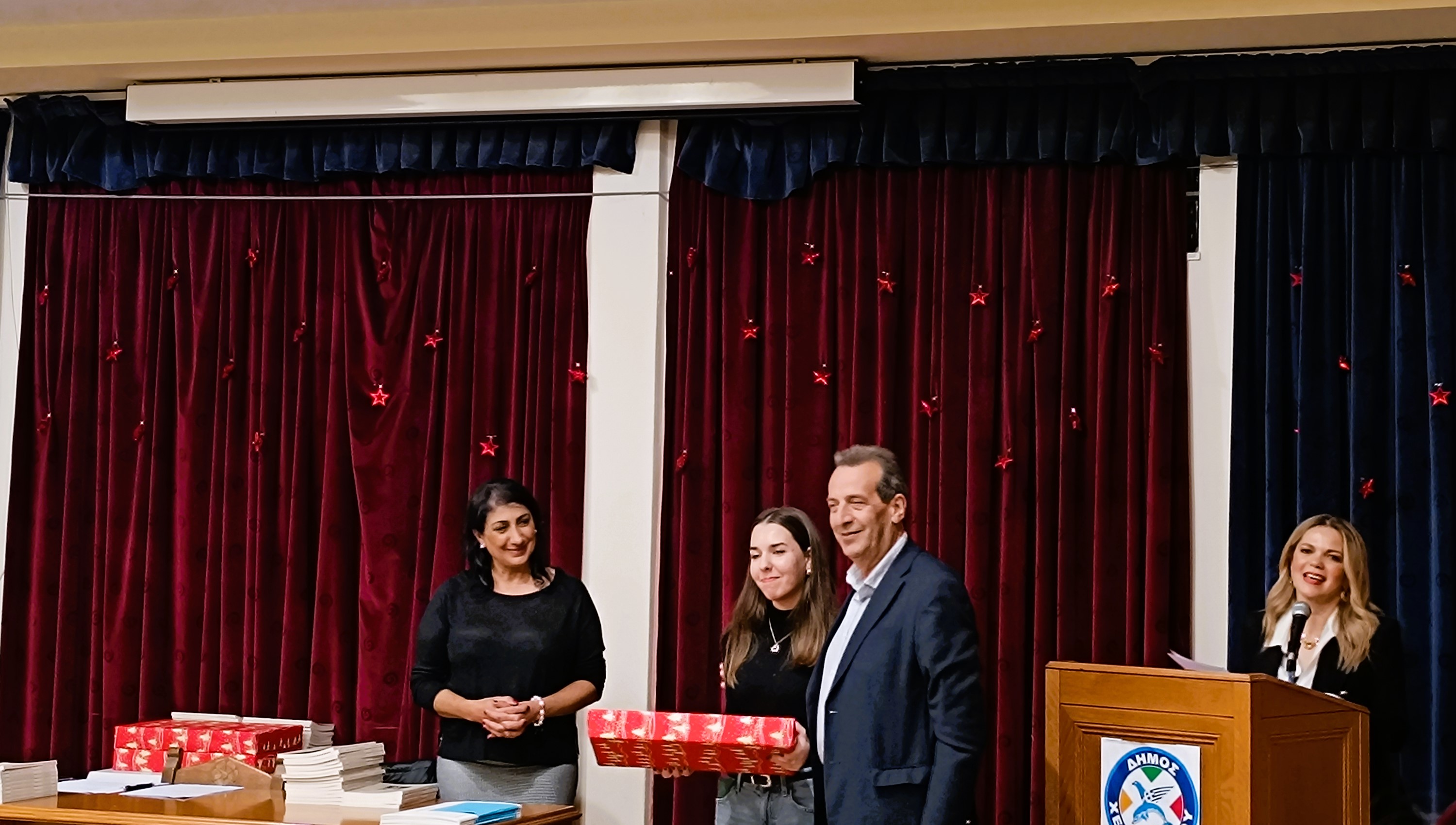 Στον χαιρετισμό του ο Δήμαρχος Χερσονήσου κ. Ζαχαρίας Δοξαστάκης ευχήθηκε καλές γιορτές σε όλους, ενώ συνεχάρη της μαθήτριες και τους μαθητές για την επιτυχία εισαγωγής τους στην τριτοβάθμια εκπαίδευση. Ο κ. Δοξαστάκης αναφέρθηκε στην τεράστια σημασία, της γνώσης, της μόρφωσης, αλλά και της Παιδείας συνολικότερα, ενώ τόνισε την ανάγκη εκπαίδευσης κι εξειδίκευσης της νέας γενιάς σε ένα ανταγωνιστικό, παγκόσμιο περιβάλλον και σε έναν δήμο που αντιμετωπίζει συνεχώς νέες προκλήσεις κι έχει ανάγκη από καταρτισμένους, νέους ανθρώπους.