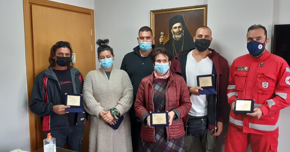 Συγκεκριμένα, απονεμήθηκαν τιμητικές πλακέτες στους εθελοντές ναυαγοσώστες, Βρουχάκη Δημήτρη, Πατερομιχελάκη Μιχάλη και Σγουρομάλλη Μιχάλη που με αυταπάρνηση βοήθησαν στην διάσωση των ναυαγών αψηφώντας τις δυσμενέστατες καιρικές συνθήκες, στο Περιφερειακό Τμήμα Κισσάμου του Ελληνικού Ερυθρού Σταυρού που βρέθηκε στο σημείο του ναυαγίου από την πρώτη στιγμή, στους γιατρούς και νοσηλευτές του Κέντρου Υγείας Κισσάμου που φρόντισαν για την περίθαλψη των ναυαγών, αλλά και στο προσωπικό του ξενοδοχείου Castell Hotel στο οποίο φιλοξενήθηκαν οι ναυαγοί μετά την περιπέτειά τους.