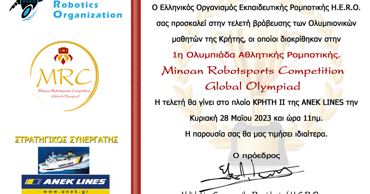 Βράβευση Κρητών Ολυμπιονικών Ρομποτικής & Φορέων - Χορηγών