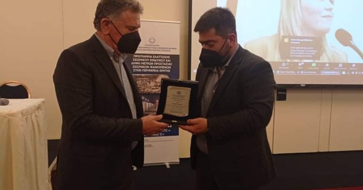 Στη διάρκεια της ενημερωτικής Ημερίδας που πραγματοποιήθηκε σήμερα στο Ηράκλειο με θέμα: «Πρόγραμμα Ελάττωσης Σεισμικού Κινδύνου και Λήψη Μέτρων Προστασίας Σεισμικών Φαινομένων στην Περιφέρεια Κρήτης», έλαβε χώρα η βράβευση από την Περιφέρεια Κρήτης των Κοινωνικών Υπηρεσιών και των Εθελοντικών Ομάδων που συνέδραμαν στον αγώνα για τη στήριξη των σεισμόπληκτων μετά το σεισμό της 27ης Σεπτέμβρη.