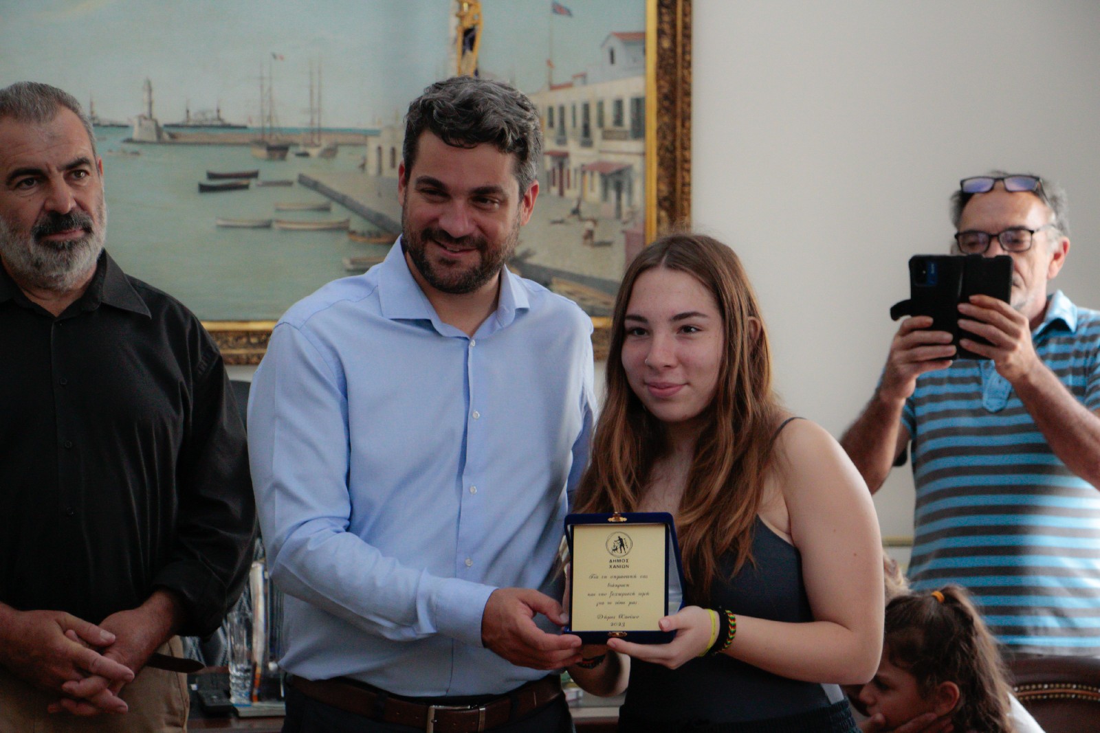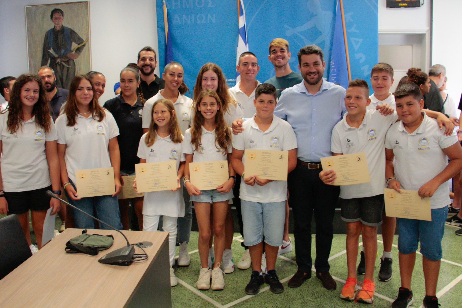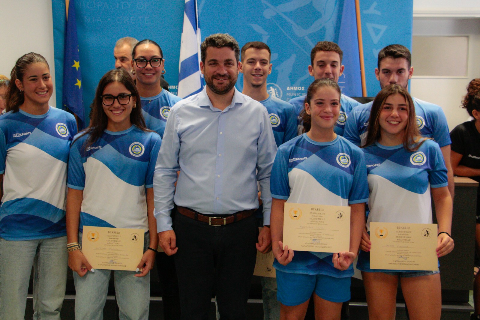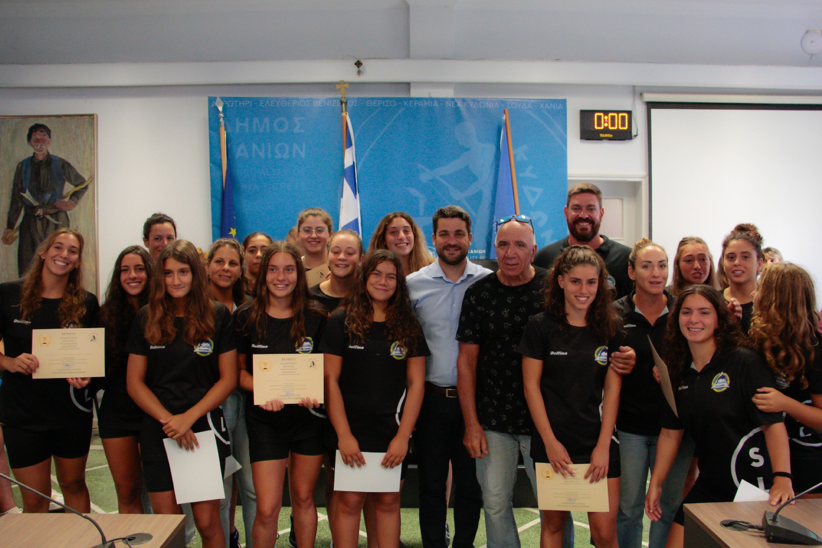 Μαζί με τους Αντιδημάρχους, Αθλητισμού Στέλιο Μιχαηλάκη, Παιδείας, Αντώνη Βαρδάκη, Οικονομικών, Τάσο Αλόγλου και Τεχνικών Υπηρεσίων, Μιχάλη Καλογριδάκη αλλά και τον Πρόεδρο της Σχολικής Επιτροπής Πρωτοβάθμιας Εκπαίδευσης Δήμου Χανίων και επί χρόνια ομοσπονδιακό προπονητή στην υδατοσφαίριση Νίκο Βλαζάκη, απονεμήθηκαν τιμητικές πλακέτες και έπαινοι στους αθλητές και τις αθλήτριες.