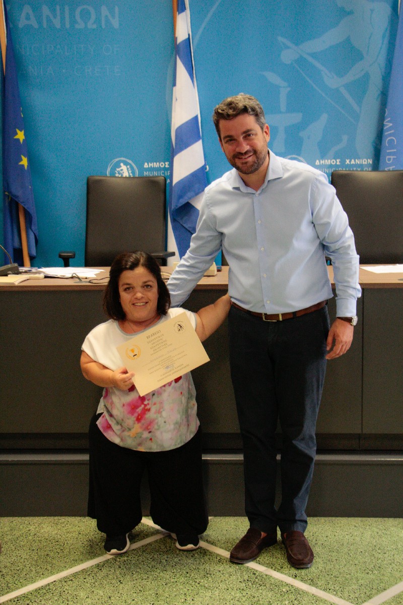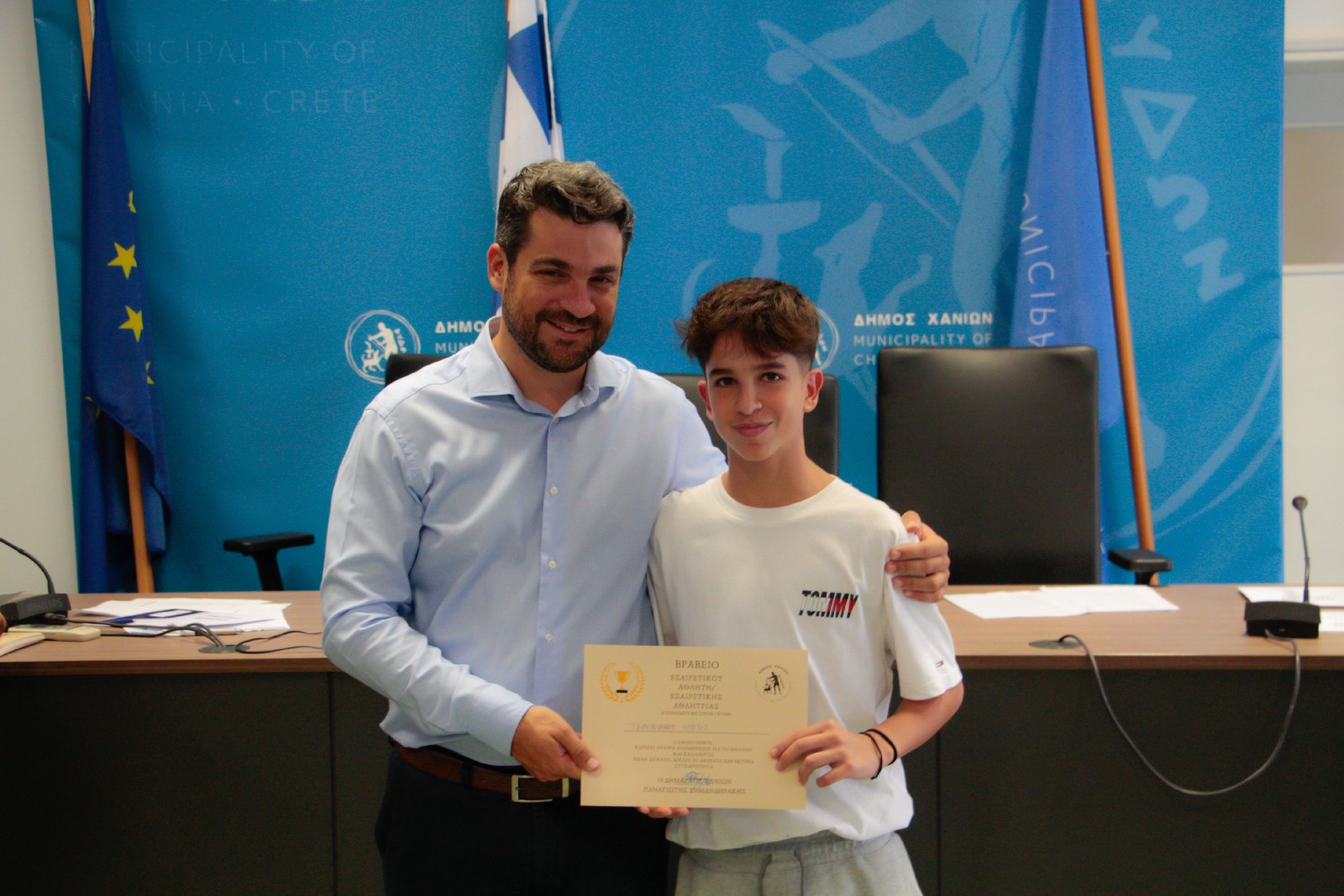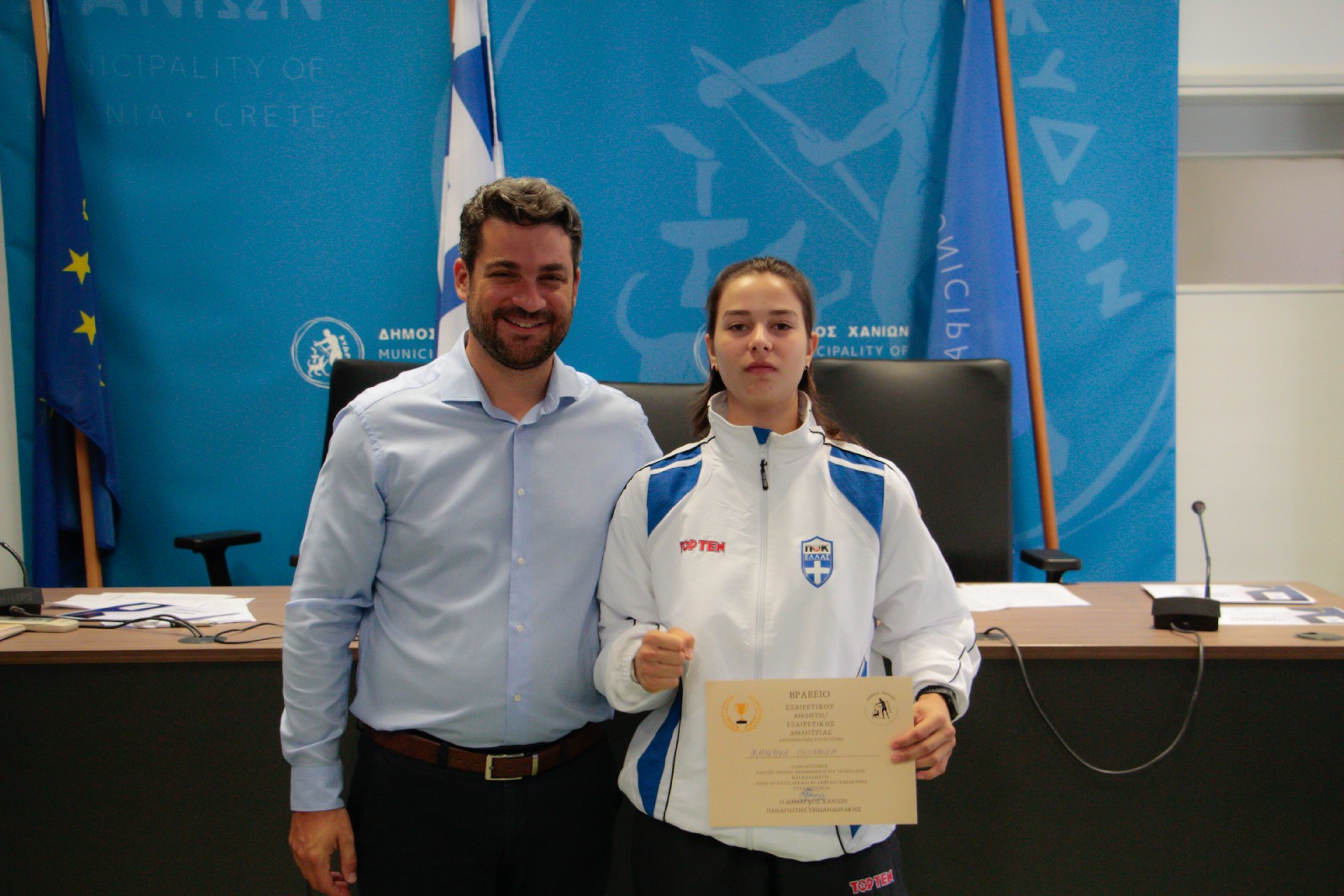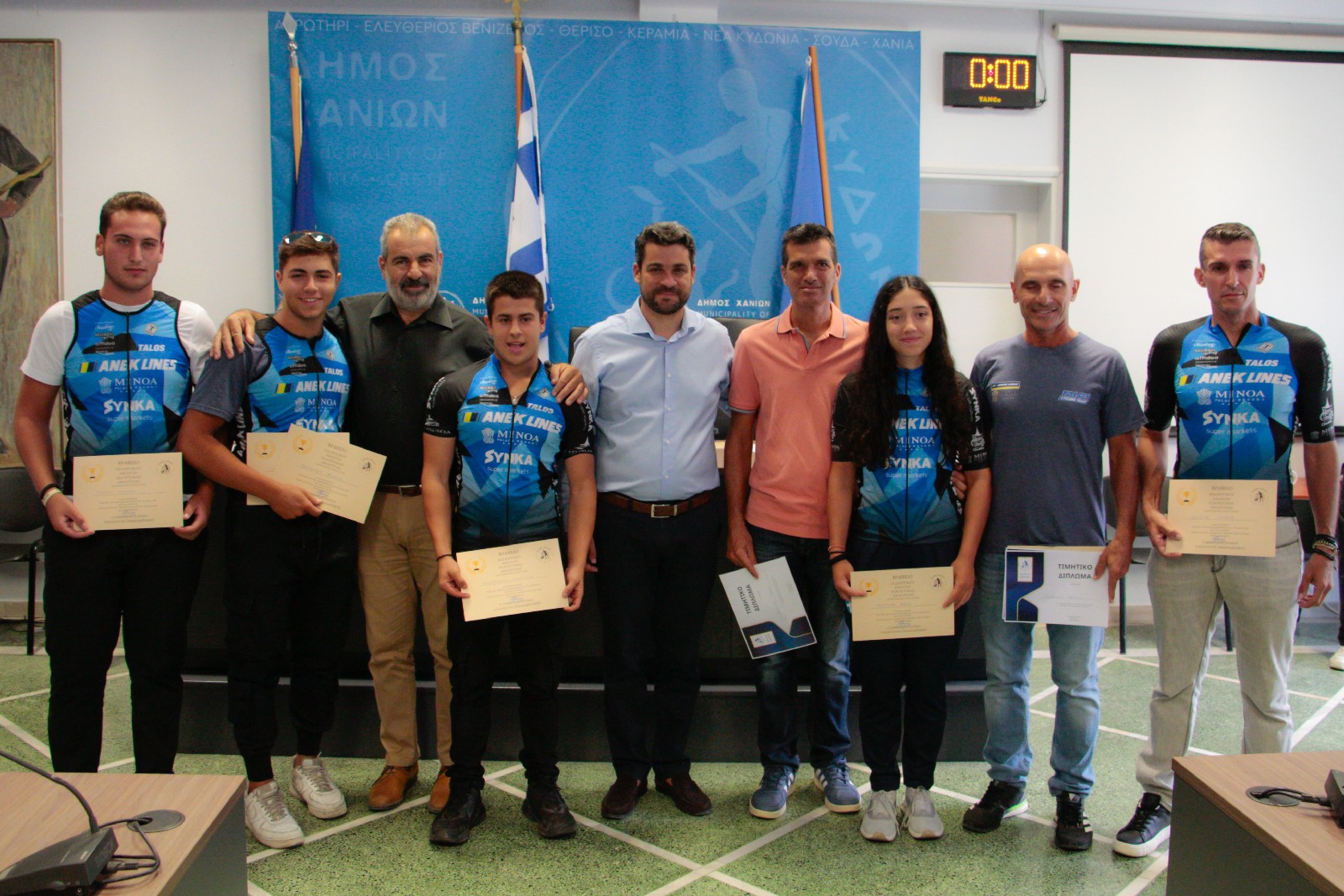 Μαζί με τους Αντιδημάρχους, Αθλητισμού Στέλιο Μιχαηλάκη, Παιδείας, Αντώνη Βαρδάκη, Οικονομικών, Τάσο Αλόγλου και Τεχνικών Υπηρεσίων, Μιχάλη Καλογριδάκη αλλά και τον Πρόεδρο της Σχολικής Επιτροπής Πρωτοβάθμιας Εκπαίδευσης Δήμου Χανίων και επί χρόνια ομοσπονδιακό προπονητή στην υδατοσφαίριση Νίκο Βλαζάκη, απονεμήθηκαν τιμητικές πλακέτες και έπαινοι στους αθλητές και τις αθλήτριες.