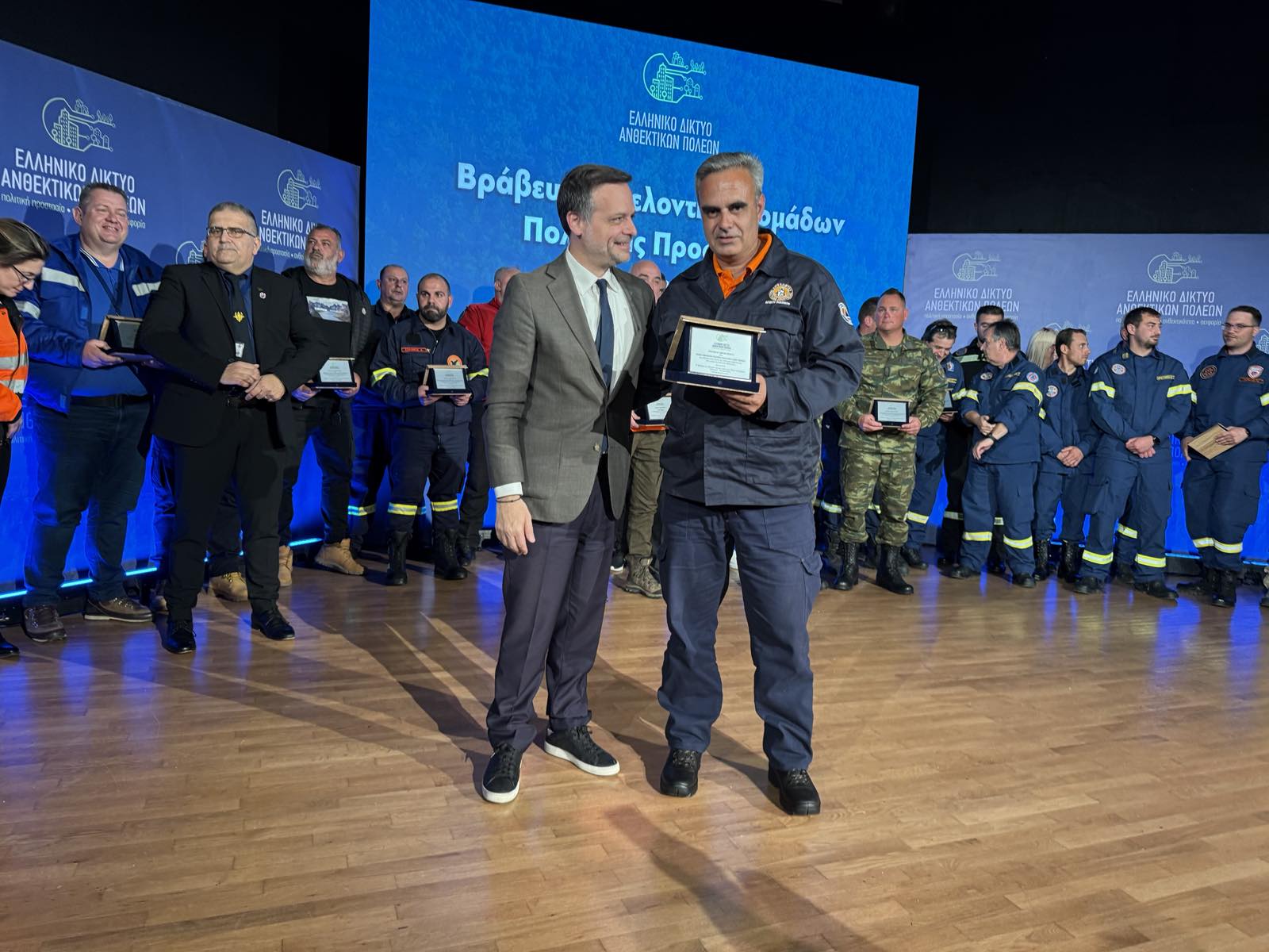 Η βράβευση πραγματοποιήθηκε παρουσία του αντιπροέδρου της κυβέρνησης κ. Κωστή Χατζηδάκη, του Υπουργού Εσωτερικών κ. Θεόδωρου Λιβάνιου και του Υπουργού Κλιματικής Κρίσης και Πολιτικής Προστασίας κ. Γιάννη Κεφαλογιάννη, με το μέλος της Ομάδας και υπεύθυνο της Πολιτικής Προστασίας του Δήμου Βιάννου κ. Μανόλη Ψαρολογάκη να παραλαμβάνει από το Δήμαρχο Αθηναίων κ. Χάρη Δούκα το βραβείο, παρουσία του Δημάρχου κ. Παύλου Μπαριτάκη.