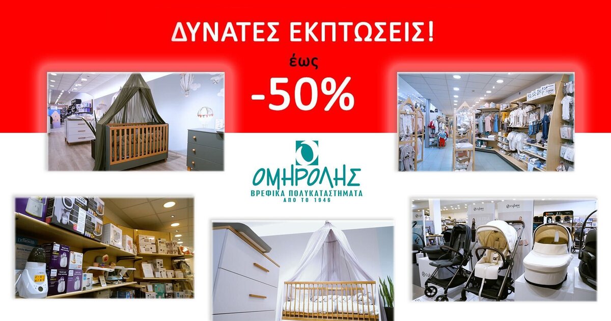 Στο κατάστημα βρεφικών ειδών “Ομηρόλης” θα ανακαλύψετε μια μεγάλη ποικιλία προϊόντων για το μωράκι σας, σε μοναδικές εκπτώσεις.