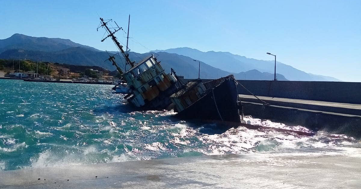 Το σκουριασμένο σκάφος παραμένει εγκαταλελειμμένο στο λιμάνι της Παλαιόχωρας από τον Νοέμβριο του 2016