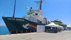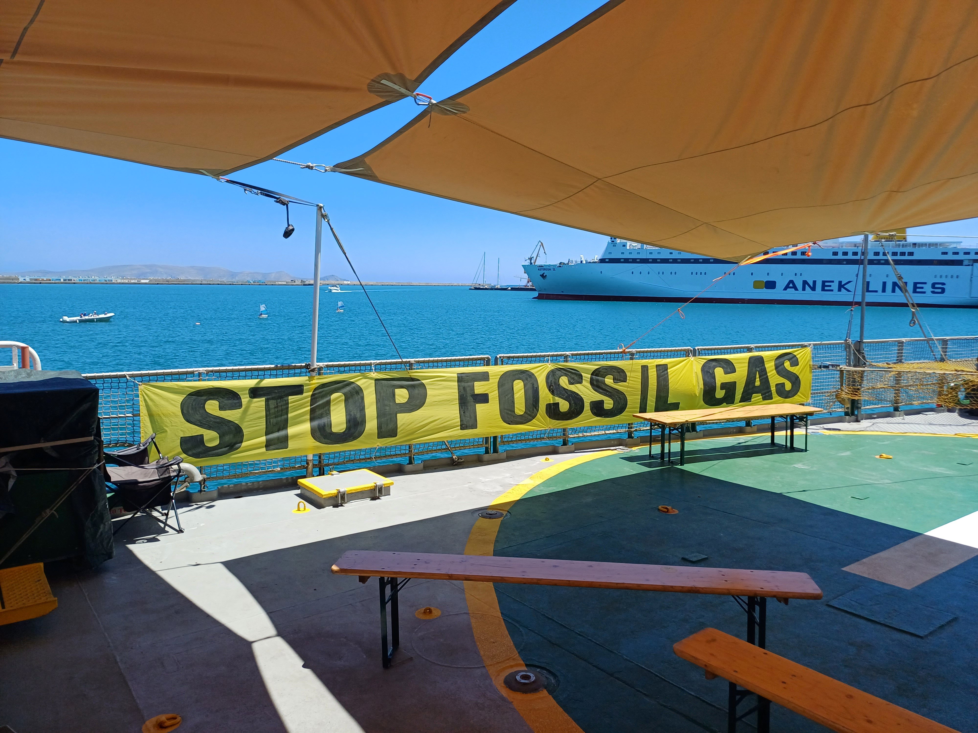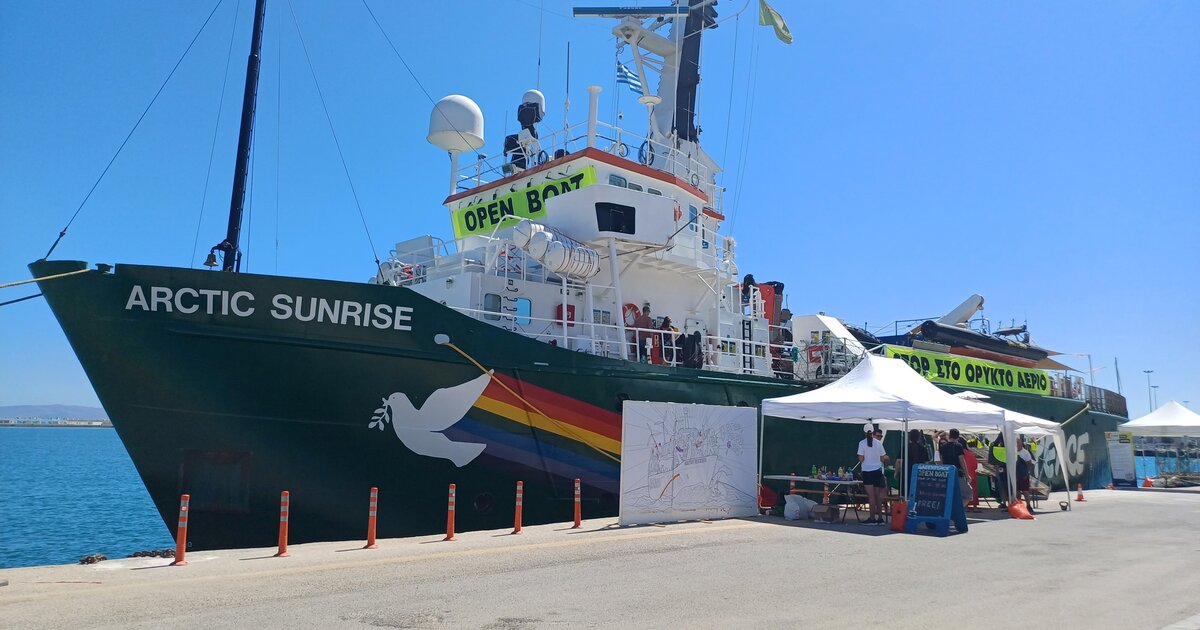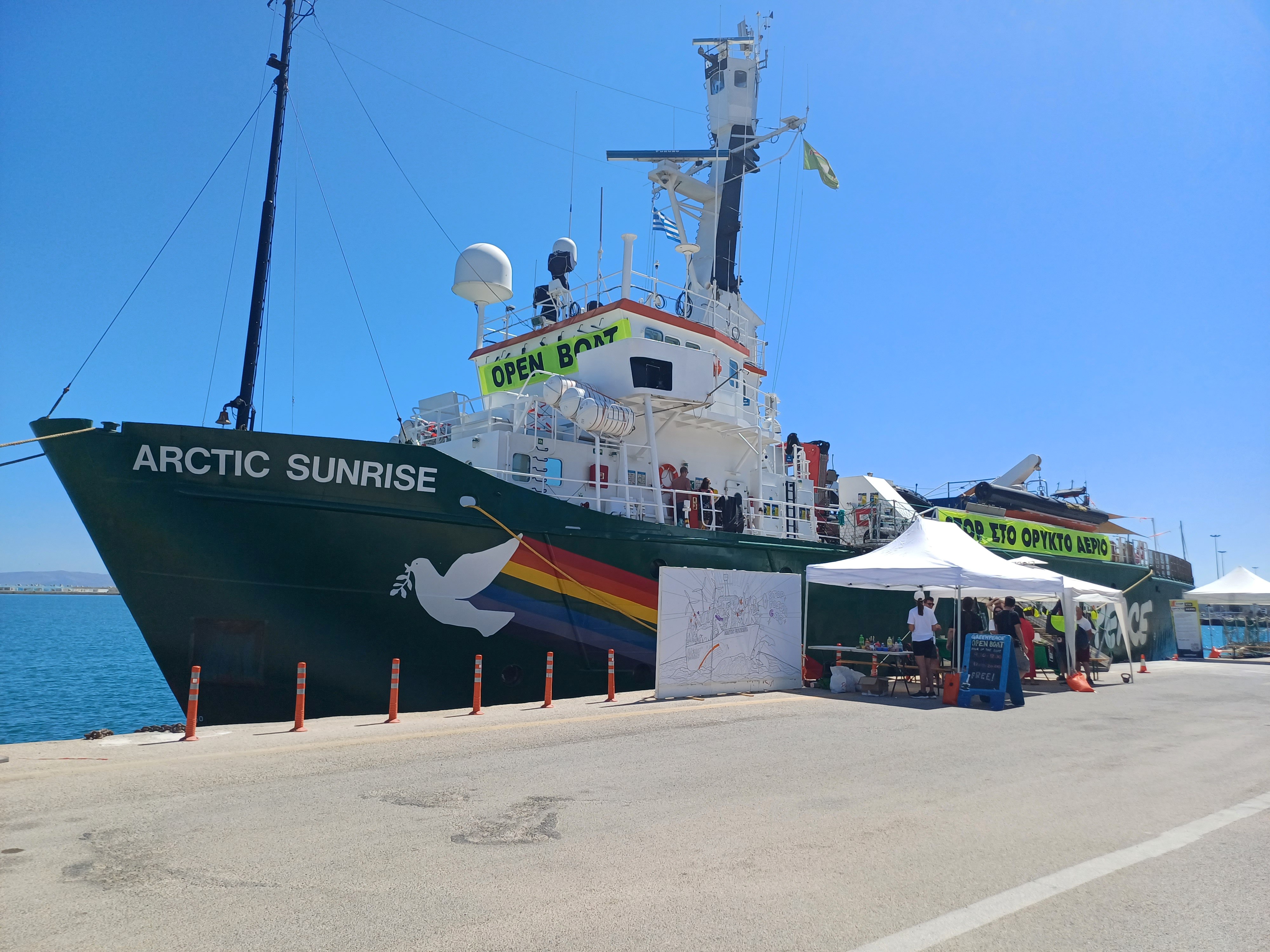 Το Arctic Sunrise βρίσκεται στο Ηράκλειο στο πλαίσιο της πανευρωπαϊκής περιοδείας της οργάνωσης για την απεξάρτηση από το ορυκτό αέριο και την απαγόρευση νέων εγκαταστάσεων ορυκτού αερίου στην ΕΕ.