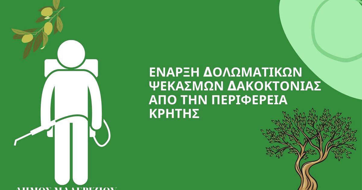 Σε Κεραμούτσι, Καμάρι, Μονή και Τύλισο ξεκινούν την Πέμπτη 16 Ιουνίου οι δολωματικοί ψεκασμοί στο Δήμο Μαλεβιζίου, για την καταπολέμηση του δάκου από τη Διεύθυνση Αγροτικής Ανάπτυξης της Περιφερειακής Ενότητας Ηρακλείου.