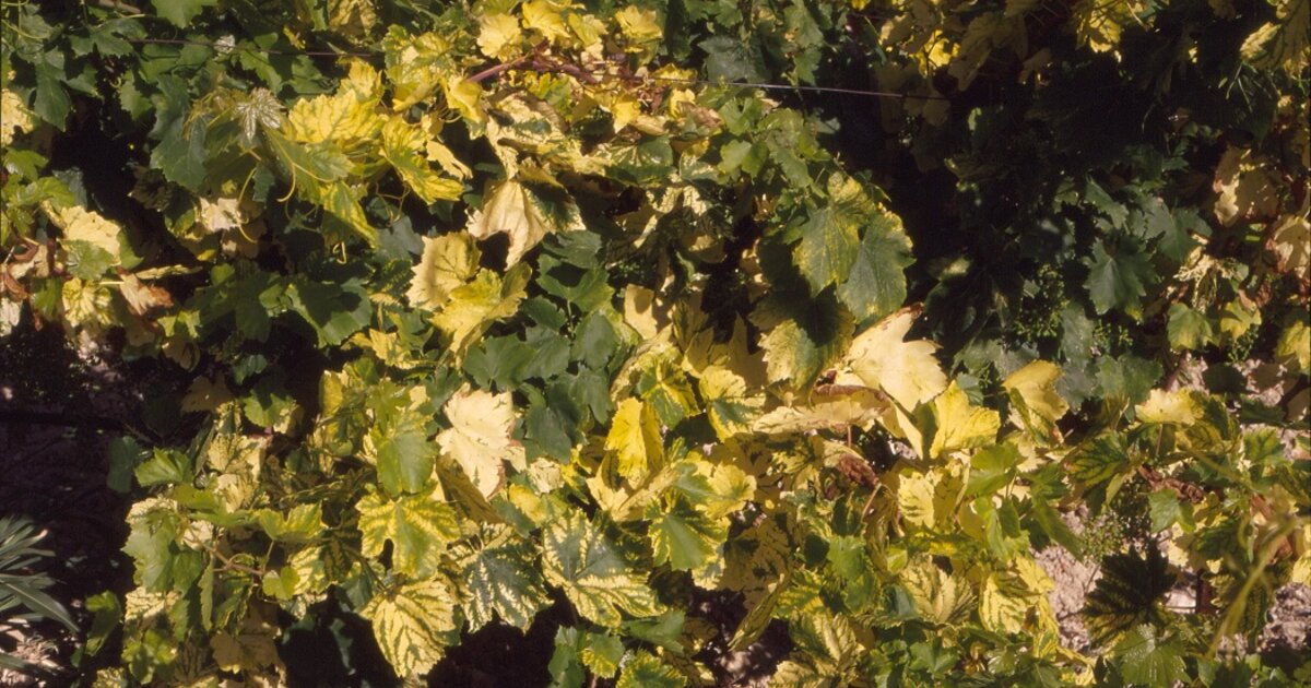 Φυτό αμπελιού σουλτανίνας μολυσμένο με τον ιό