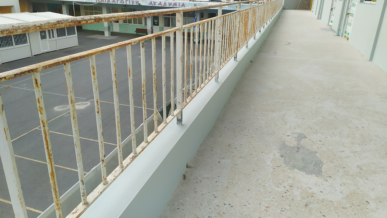 2. Τα πεπαλαιωμένα, σκουριασμένα κιγκλιδώματα του μπαλκονιού του ορόφου που δεν πληρούν τις προϋποθέσεις του κανονισμού για τα σχολικά κτίρια με αποτέλεσμα να είναι επικίνδυνα για τα παιδιά.