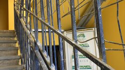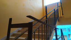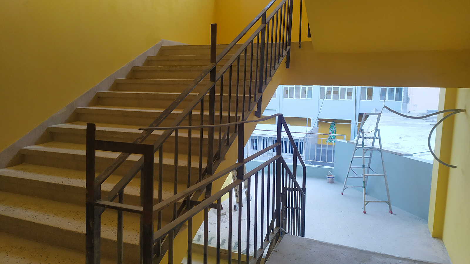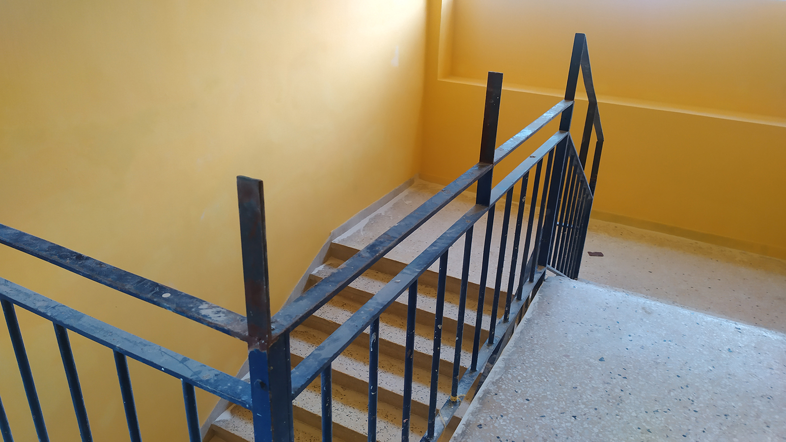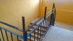 1. Την κουπαστή της σκάλας που οδηγεί στον όροφο του βορινού κτιρίου και η οποία αποτελείται από επικίνδυνα προεξέχοντα σίδερα, αλλά και σημεία από τα οποία μπορούν να χωρέσουν τα κεφάλια των παιδιών με σοβαρό κίνδυνο για τη ζωή τους.