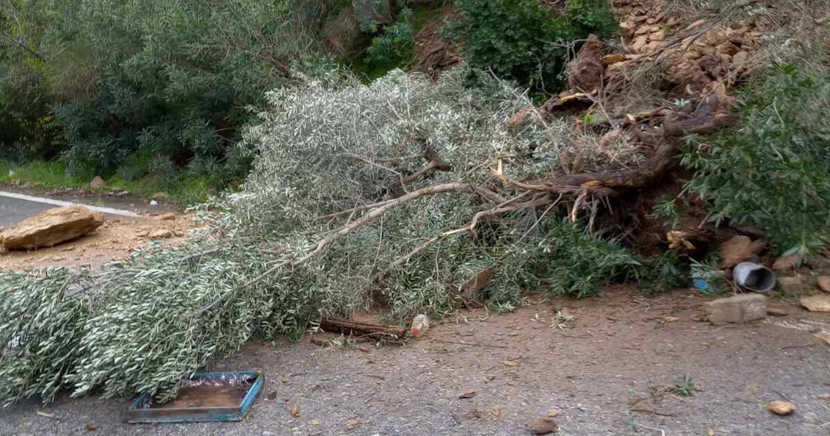 Το δέντρο φαίνεται πως έπεσε στο δρόμο μετά το χωριό Σφάκα, ως αποτέλεσμα των έντονων βραχοπτώσεων που σημειώθηκαν στην περιοχή.