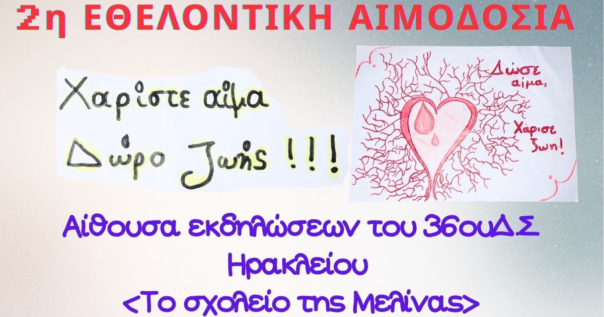 "Συνεχίζοντας την εξαιρετικά πετυχημένη δράση του 2025 όπου καταφέραμε όλοι οι συνδιοργανωτές να συγκεντρώσουμε 36 φιάλες αίμα για τα παιδιά και τους συνανθρώπους μας που έχουν ανάγκη ,δίνουμε το νέο μας ραντεβού την Παρασκευή 23 Ιανουαρίου στο 36ο ΔΣ Ηρακλείου για τη 2η εθελοντική μας Αιμοδοσία.