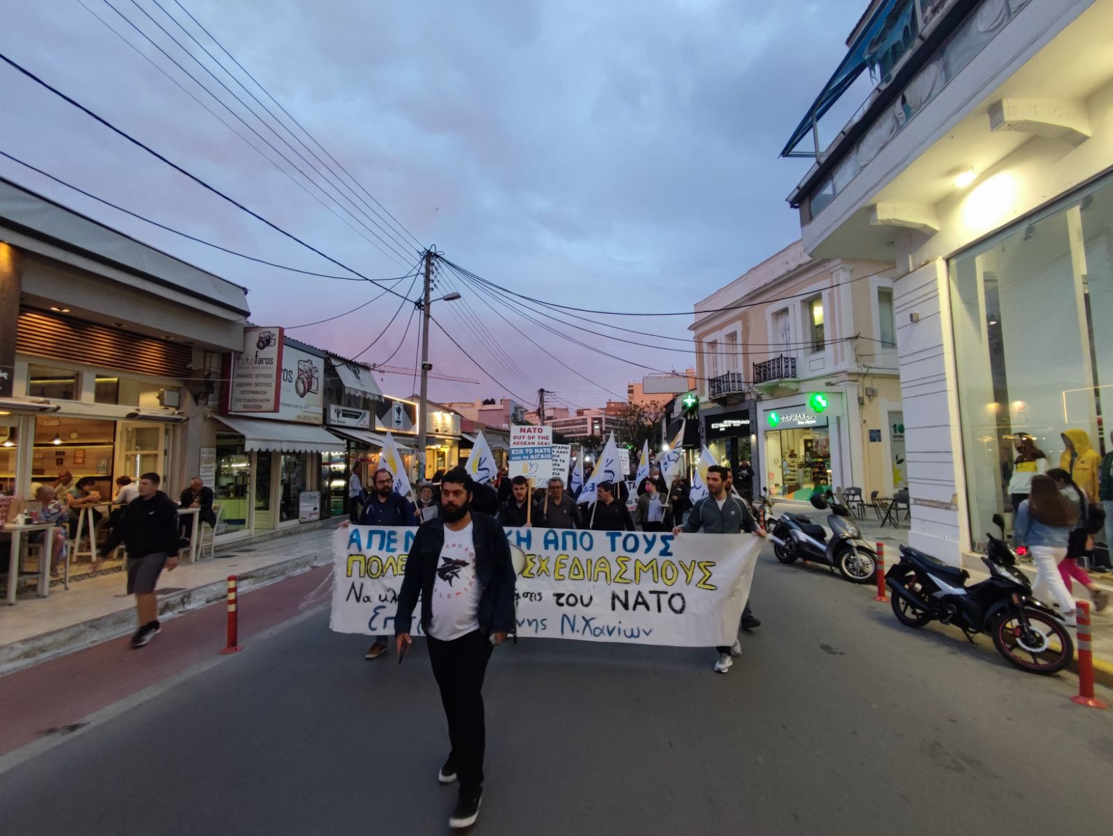 Ακολούθησε πορεία στο κέντρο των Χανίων με συνθήματα όπως «Έξω το ΝΑΤΟ, να φύγουνε οι βάσεις, καμία συμμετοχή στις επεμβάσεις» και «Όχι στους πολέμους των ιμπεριαλιστών, ζήτω η φιλία των λαών».